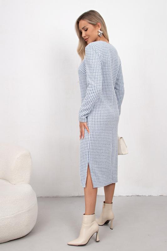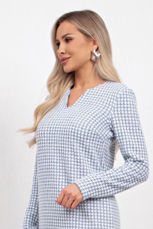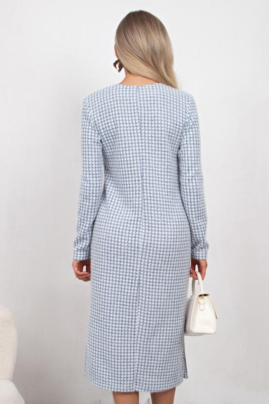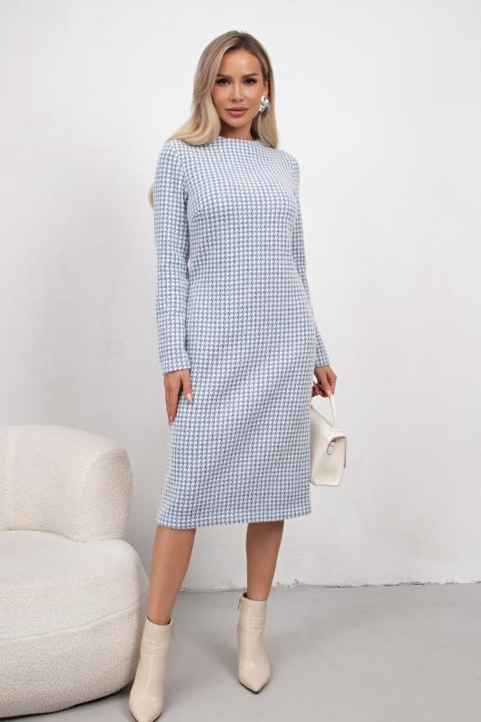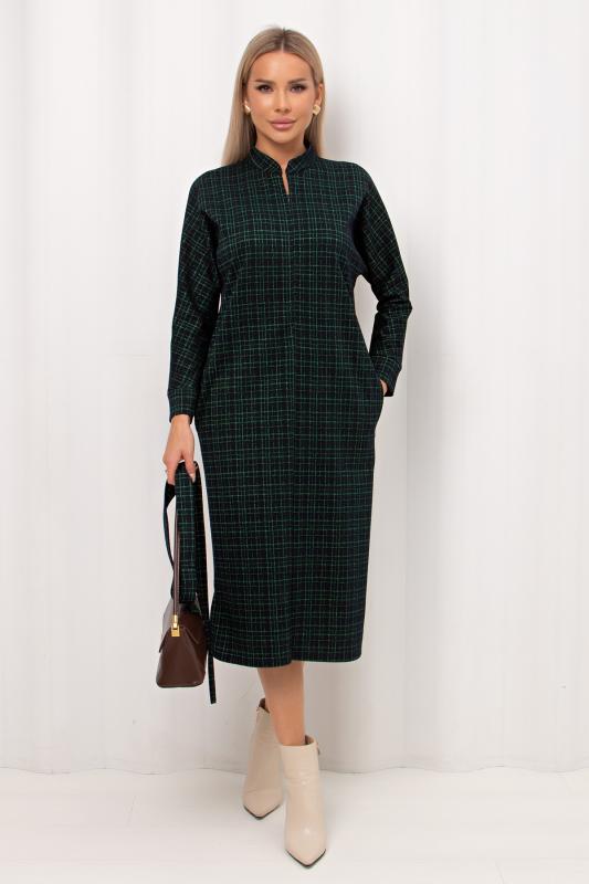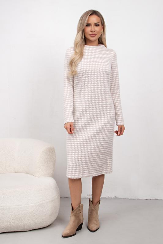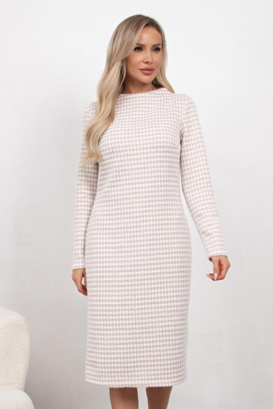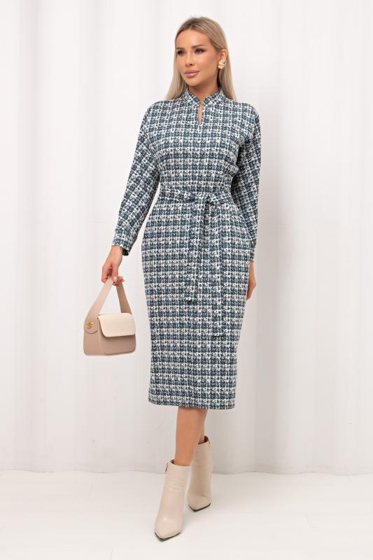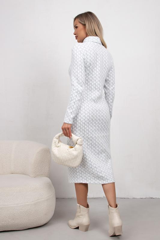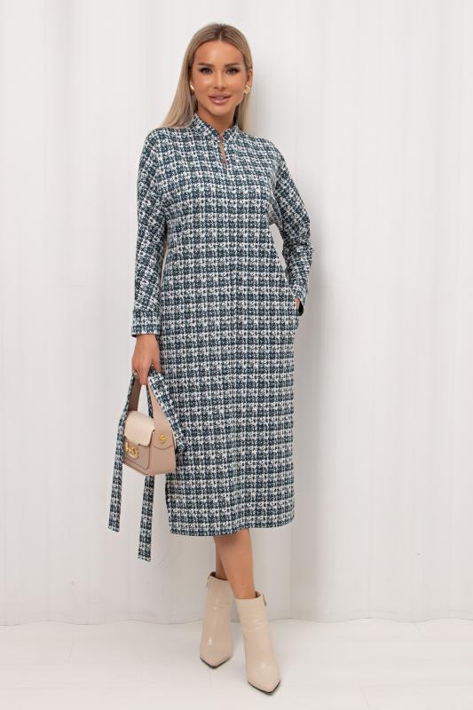 Комфортное платье прямого силуэта выполнено из трикотажного полотна Ангора. Горловина оформлена цельнокроеной стойкой - лодочка. Длинный втачной рукав. Низ ровный, без разрезов.