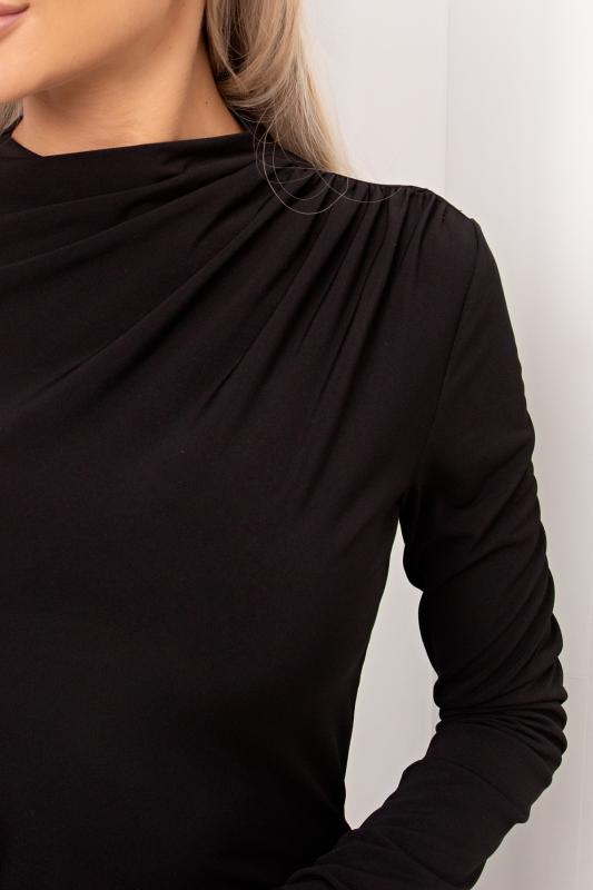 Водолазка прилегающего силуэта из трикотажного полотна. Втачные длинные рукава из сетки. Горловина оформлена воротником - хомут из сетки. Низ ровный, без разрезов.