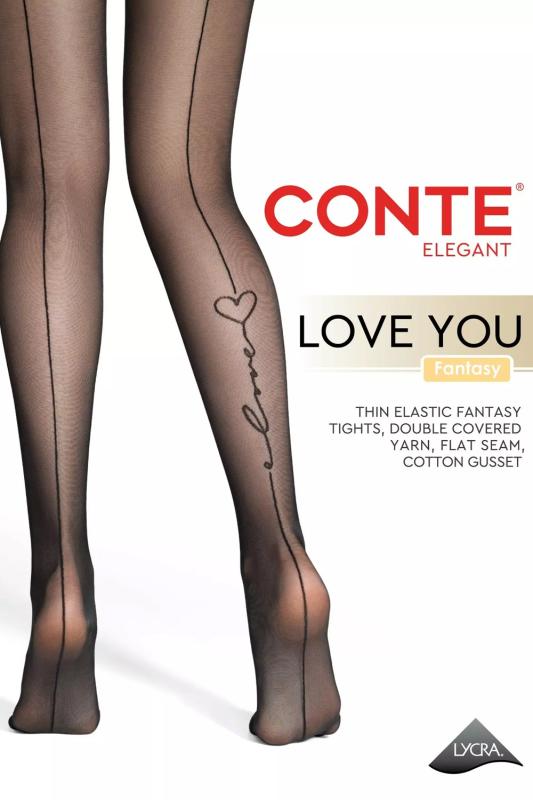 Колготки CONTE LOVE YOU nero — романтичное и стильное решение для создания игривого образа. Эти эластичные колготки с кокетливой надписью «Love» на одной ноге и имитацией элегантного шва станут изысканным акцентом вашего гардероба. Инновационная технология двойного оплета нити LYCRA обеспечивает превосходный комфорт и ощущение "