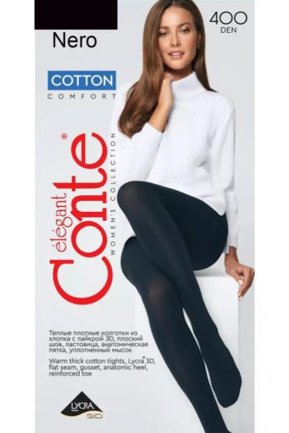 Колготки женские. COTTON 400 - очень плотные непрозрачные мягкие тёплые колготки с большим содержанием хлопка с 3D effect, серии COTTON comfort, созданные дарить ощущения тепла и комфорта в осенне-зимний период. Нежное прикосновение натурального хлопка придают мягкость и комфортность ношения, а 3D вязка - однородность, большую эластичность и лучшую износоустойчивость.