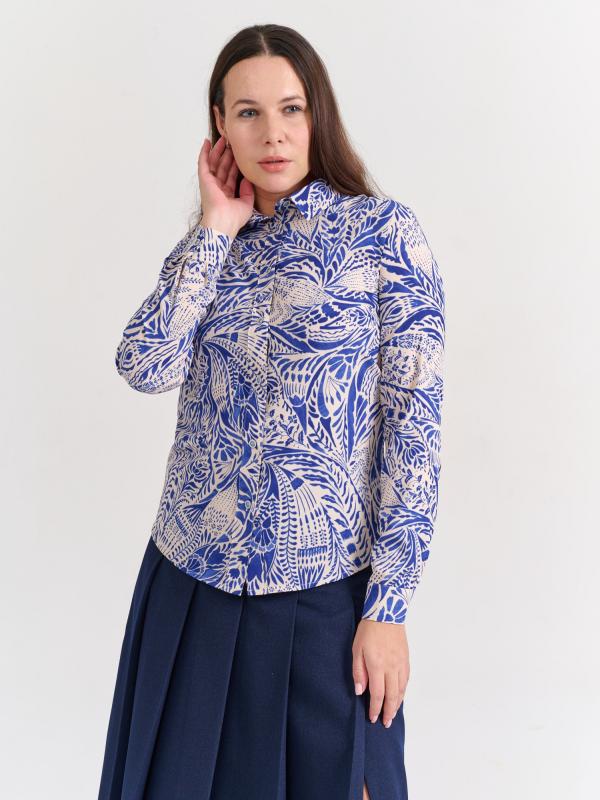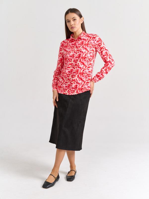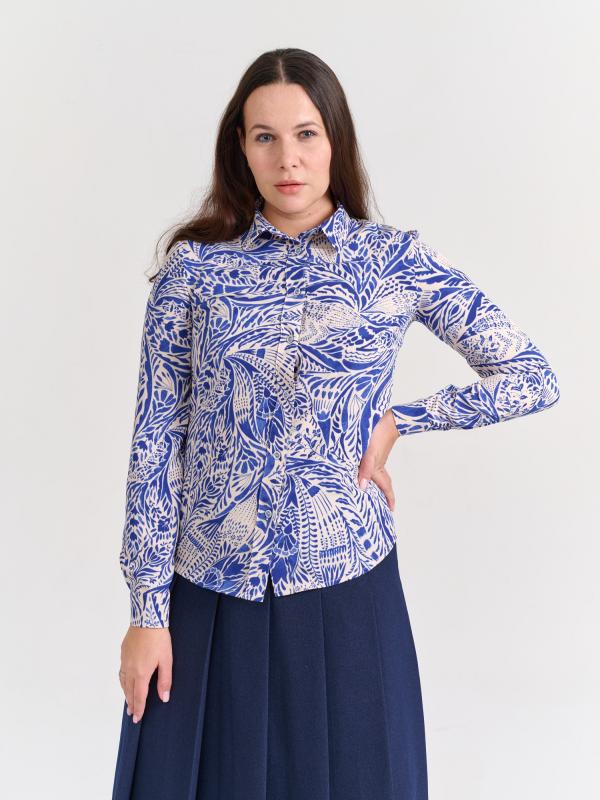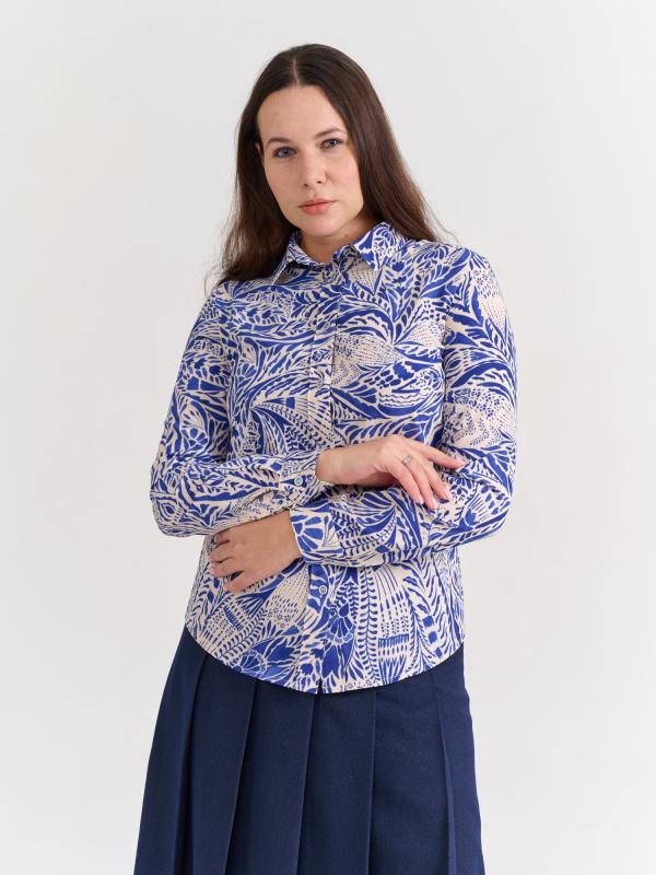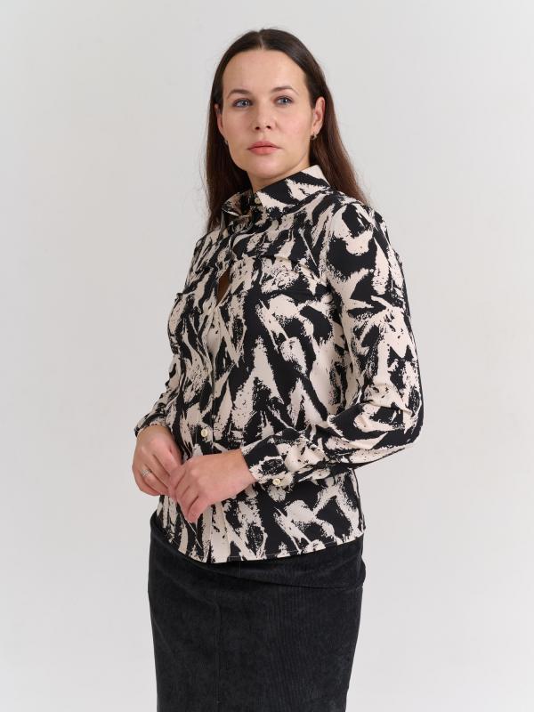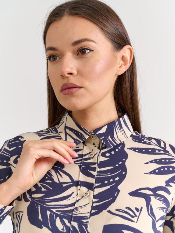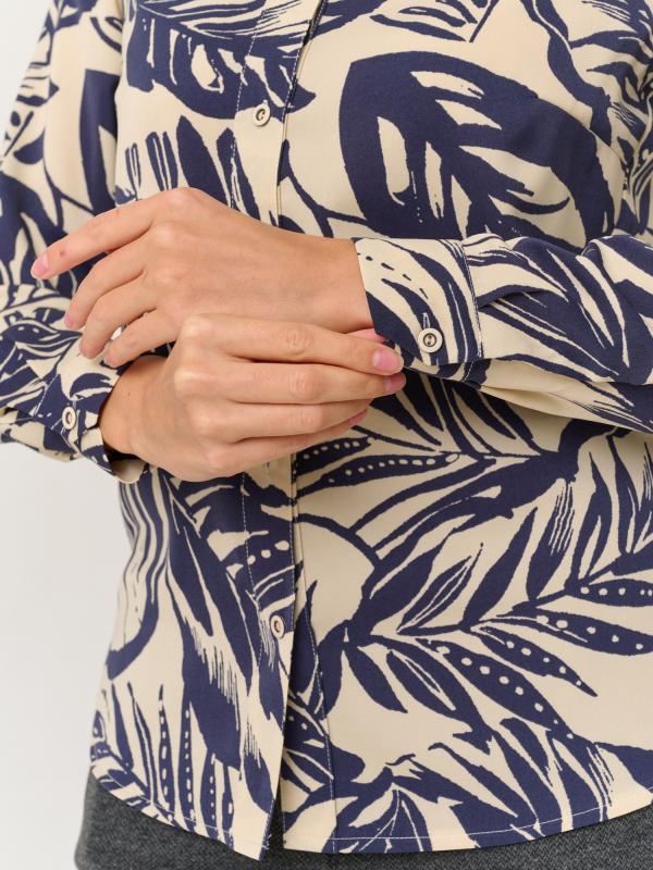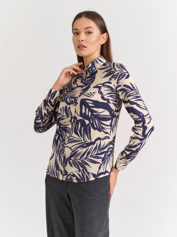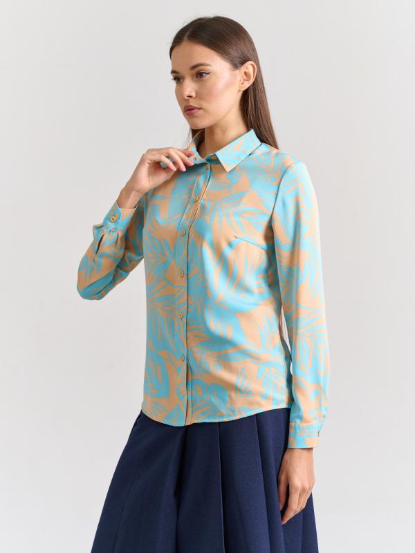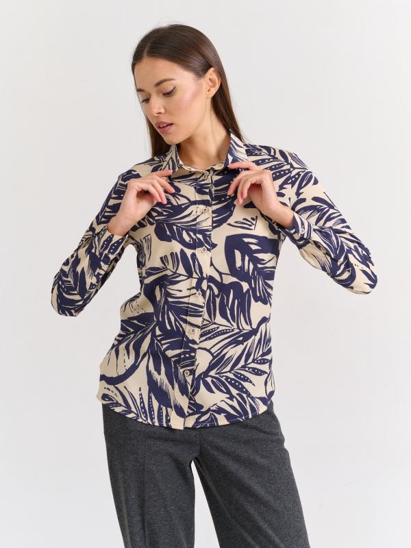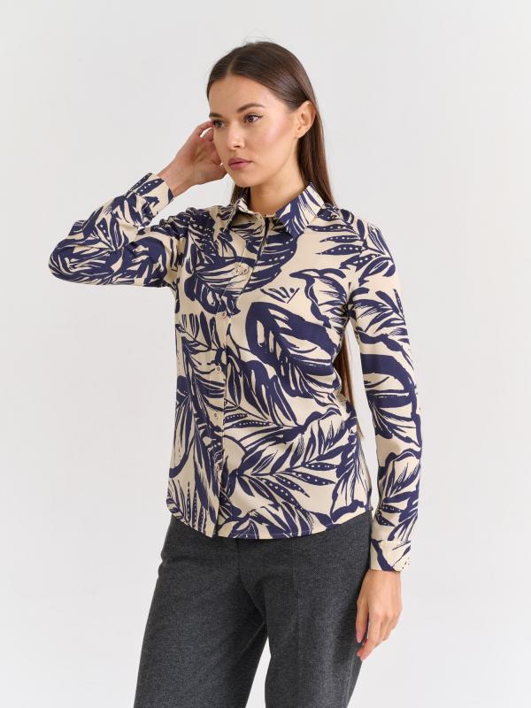 Женская рубашка с длинным рукавом приталенного силуэта. Застежка расположена спереди и закрепляется на пуговицы. Рукав данной модели на манжете и закреплен также пуговицей. Элегантная рубашка, прекрасно сочетается с брюками и юбками, любого формата - от классического офисного до повседневного.