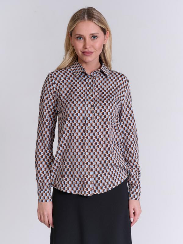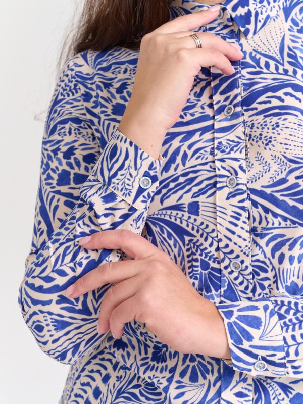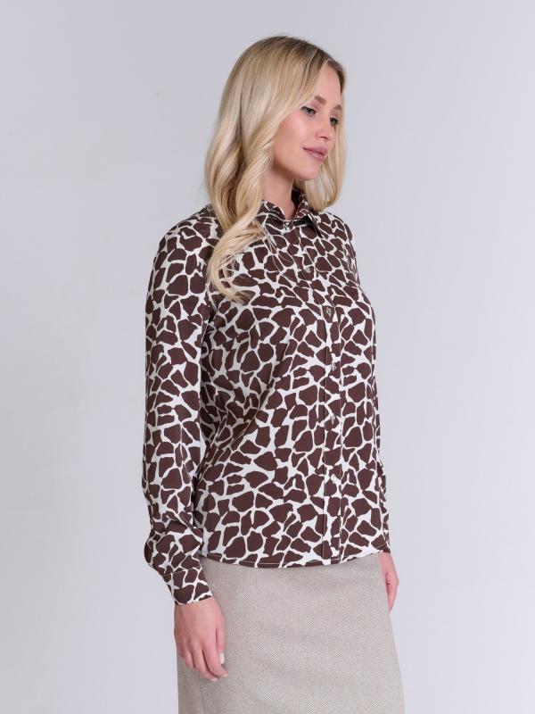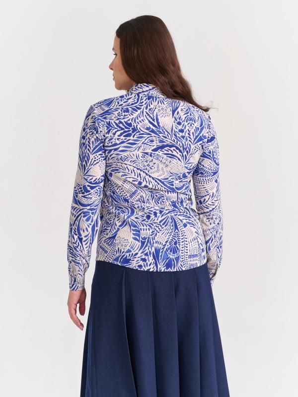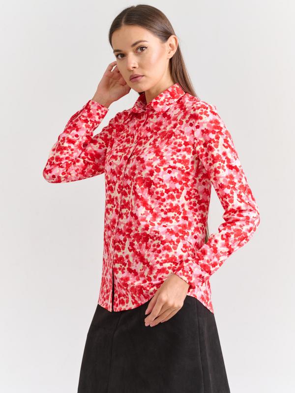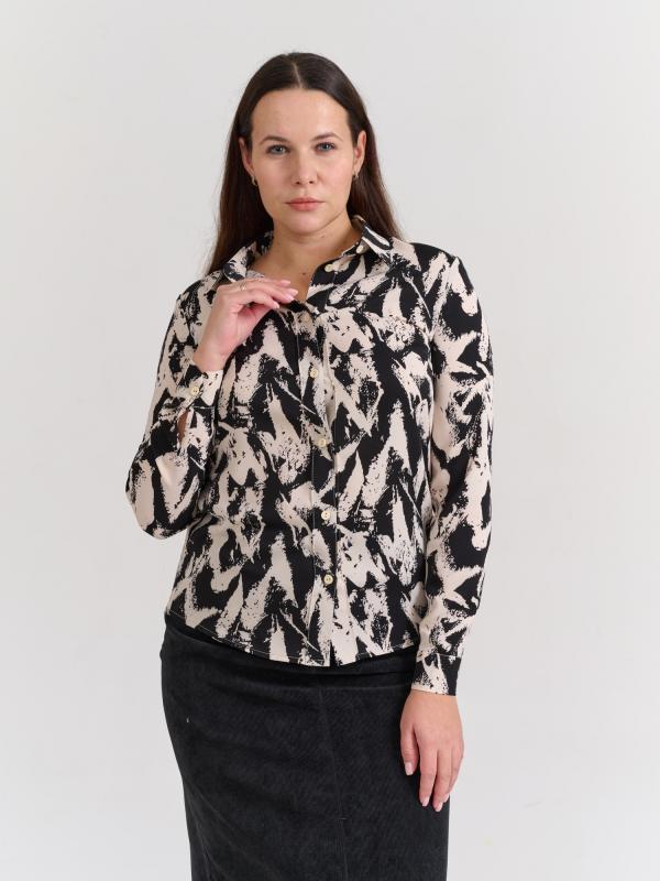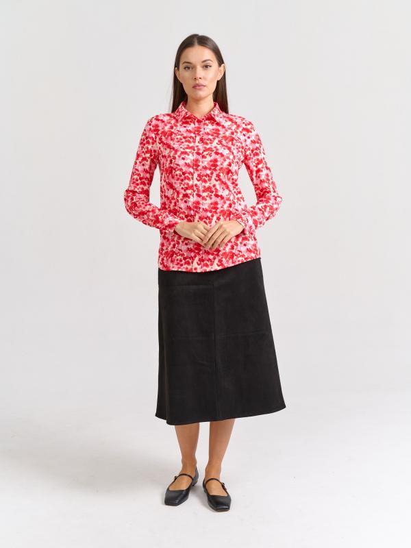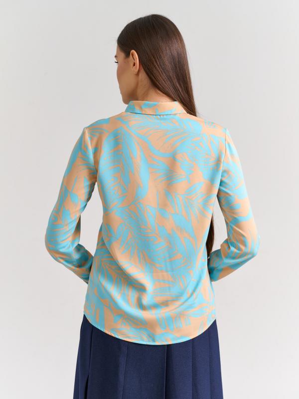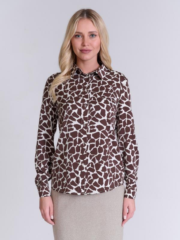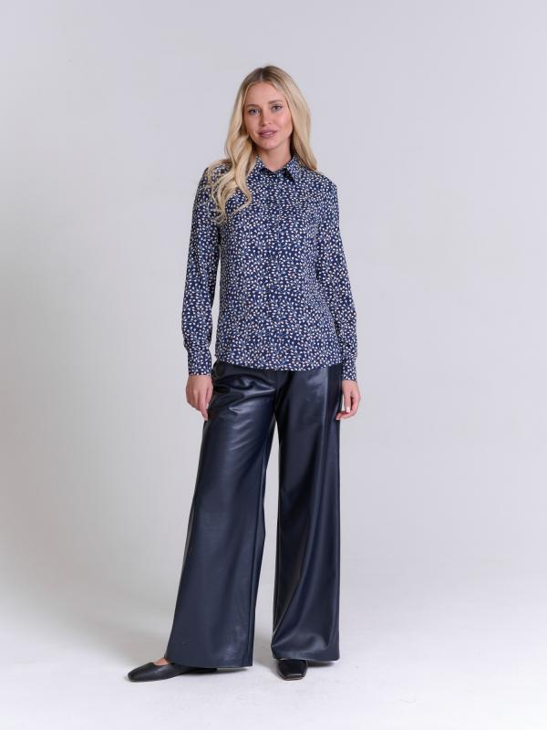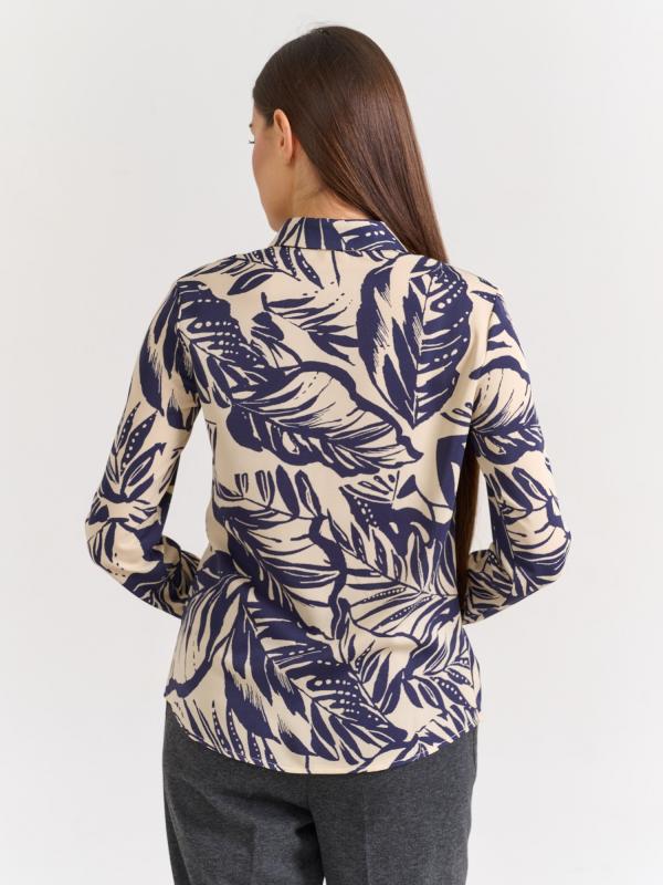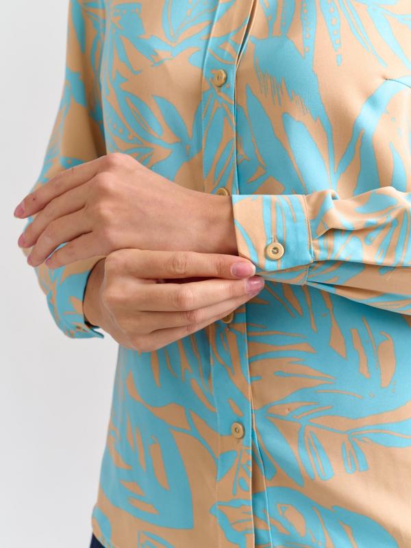 Женская рубашка с длинным рукавом приталенного силуэта. Застежка расположена спереди и закрепляется на пуговицы. Рукав данной модели на манжете и закреплен также пуговицей. Элегантная рубашка, прекрасно сочетается с брюками и юбками, любого формата - от классического офисного до повседневного.