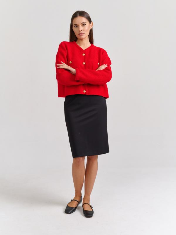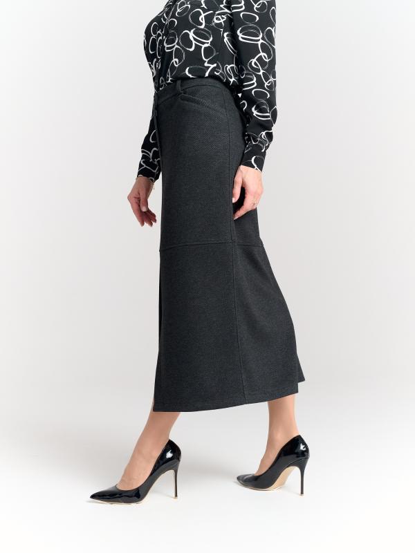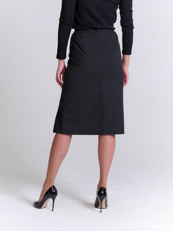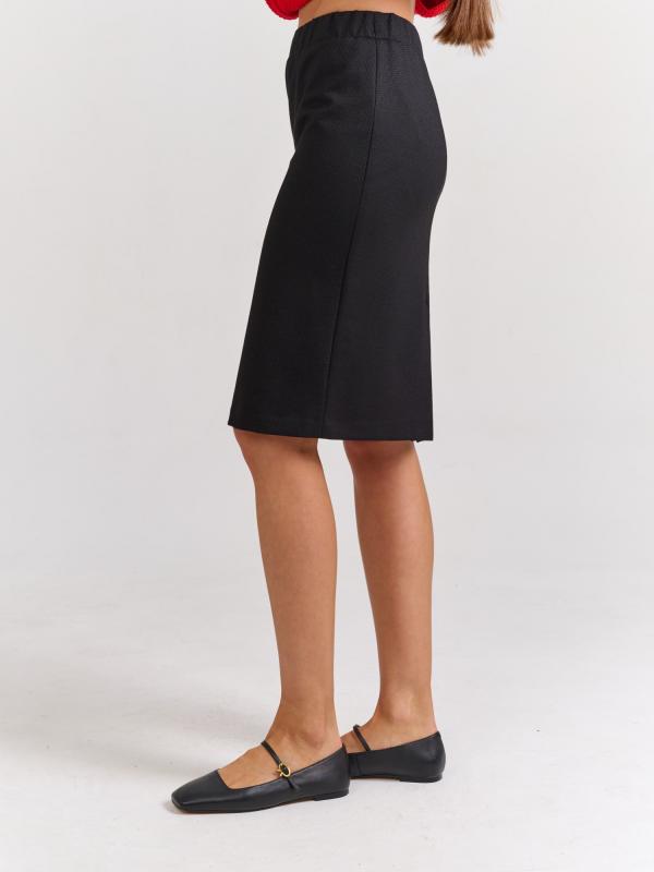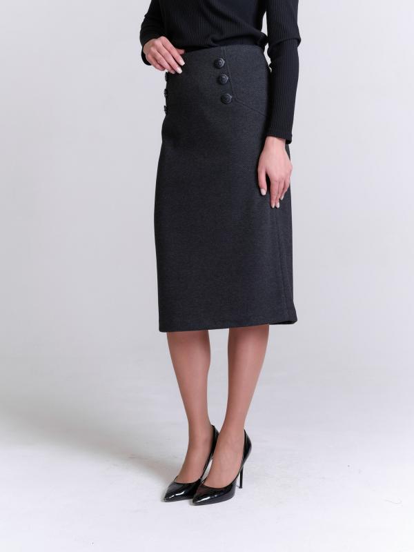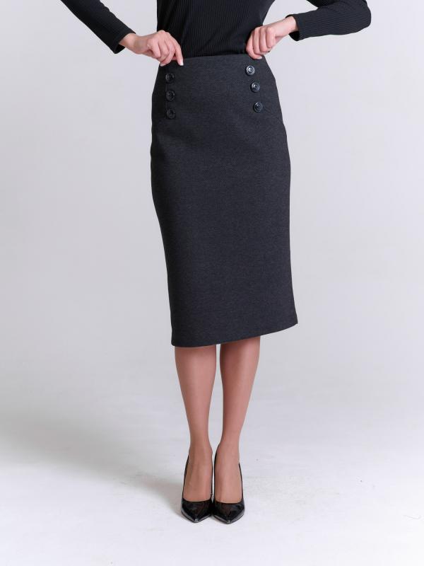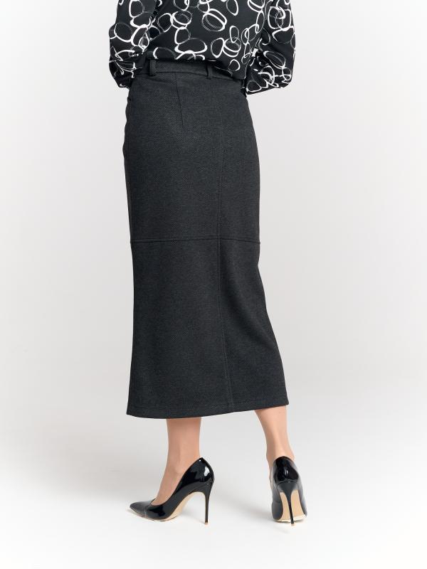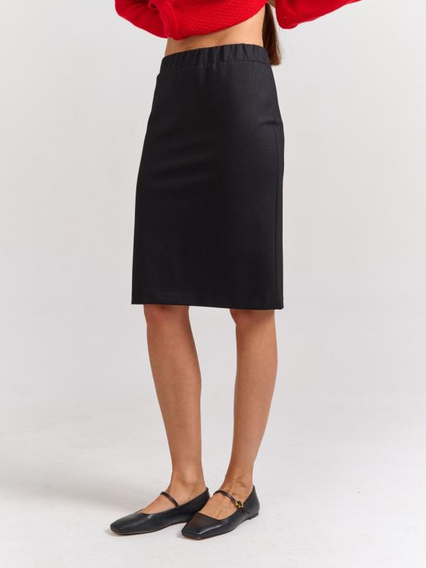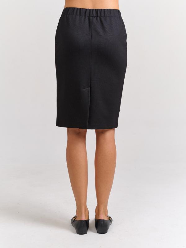 Женская юбка прямого силуэта, зауженная к низу, на круговой резинке. Юбка на подкладке, выполнена в трикотажной ткани. Классический вариант отлично сочетается с блузами, жилетами и жакетами любого формата.