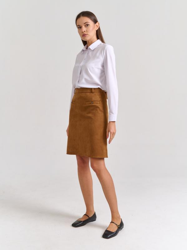 Женская вельветовая юбка прямого силуэта на подкладке с притачным поясом и шлевками. Застежка расположена спереди по среднему шву на молнию и закрепляется пуговицей. Прекрасный повседневный офисный вариант, с накладными карманами сзади и очень удобными функциональными карманами спереди.Рубашка арт.976-1135