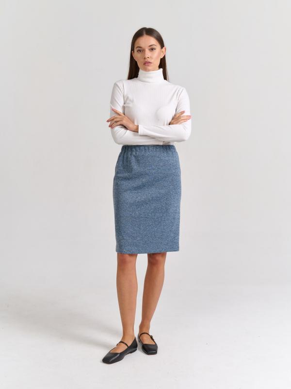 Женская юбка прямого силуэта, зауженная к низу, на круговой резинке. Юбка на подкладке, выполнена в ткани с люрексовой нитью. Классический вариант отлично сочетается с блузами, жилетами и жакетами любого формата.