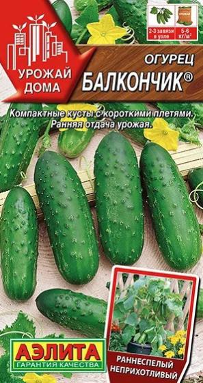 Лучший короткоплетистый сорт для балконов и лоджий (или маленьких теплиц). Длина главной плети – не более 1 м. Очень быстро отдает урожай. Растения, преимущественно, женского типа цветения, отлично растут и в открытом грунте. В плодоношение вступают на 40-45-й день после всходов. Кусты компактные, не нуждаются в формировании и очень просты в уходе. В каждом узле формируется по 2-3 зеленца массой 70-90 г – вкусных, хрустящих, сочных и очень ароматных. Урожайность в защищенном грунте – 5-6 кг-м2. Сорт устойчив к ВОМ, МР и ЛМР.