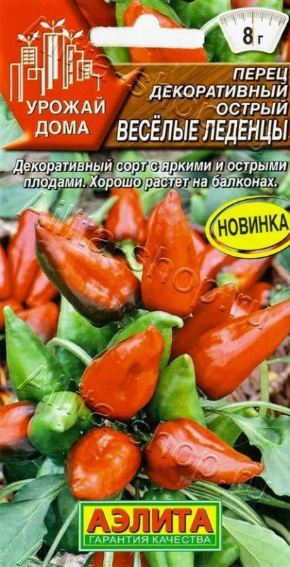 Декоративный сорт острого перца с очень яркими плодами и обильным плодоношением. Хорошо растет на балконах, подоконниках, в теплицах и в открытом грунте. Растения полураскидистые, высотой 30-45 см. Плоды ароматные, глянцевые, острые на вкус, массой не более 5-8 г. Перчики созревают постепенно, меняя цвет от зеленого, фиолетового до ярко красного. Их используют в качестве приправы к блюдам, при консервации и для изготовления порошка. Декоративный перец в домашних условиях, при хорошем уходе, можно выращивать несколько лет.