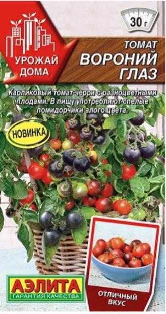 Эффектный карликовый сорт томата-черри для украшения балкона и подоконника. Растения супердетерминантные, при выращивании в ограниченном объеме грунта их высота не превышает 30-35 см. Период от появления всходов до сбора урожая 105-115 дней. Томаты в процессе созревания меняют окраску трижды: зеленые с фиолетовыми плечиками становятся черными в технической спелости, а черные приобретают алую окраску – в потребительской. Средняя масса плодов 25-30 г, мякоть красная, сладкая и ароматная. Сорт подходит для свежего потребления и консервирования. Растение выращивают в горшке или контейнере емкостью 5-7 л с дренажом на дне. Необходимо обеспечить рыхлый, питательный грунт и регулярные поливы. Сорт не требует формирования. Возможно выращивание в открытом грунте и в теплице между высокорослыми видами. Плотность посадки может достигать 7-8 кустиков на 1 м 2 .