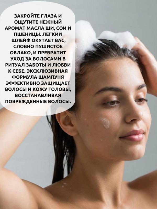 облегчают расчёсывание. Масло ши – влияет непосредственно на поврежденную структуру волос, восстанавливая и укрепляя ее. Нормализует водный баланс, Минимизируется сечение волос на кончиках. Уход за кожей головы. Ниацинамид - активизирует спящие волосяные луковицы, что способствует росту волос