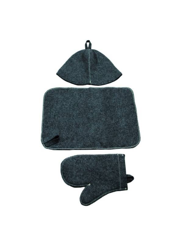 Шапка, рукавица, коврик 44х32смВойлокКлассический комплект из качественного плотного войлока. Необходимый набор для каждого банщика. Отличная защита от перегрева по низкой цене! Упакован в непромокаемую косметичку