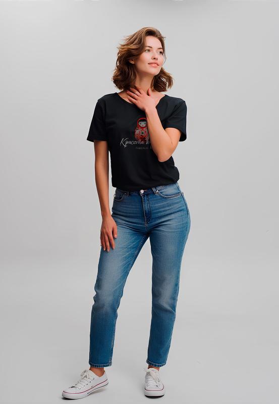 Футболка из мягкого хлопкового трикотажа. Круглый вырез горловины, прямой силуэт. Короткий рукав. Принт на передней части изделия.