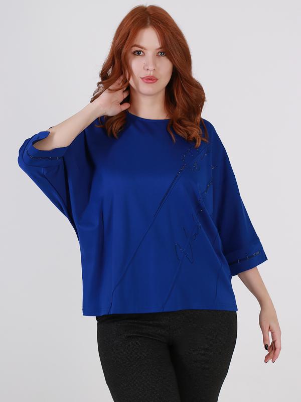 Нарядная кофта оверсайз — идеальный выбор на каждый день. Эта стильная и удобная одежда подходит для любого случая: от прогулок с друзьями до романтических свиданий. Трикотажная блузка цвета электрик со стразами добавит изысканности вашему образу, делая вас неотразимой.rnrnБлузка больших размеров идеально сочетается с джинсами, брюками и юбками, создавая стильный и комфортный образ. Синий цвет придаёт элегантность и уверенность, а укороченный рукав делает блузку удобной и практичной.rnrnНе упустите возможность обновить свой гардероб этими стильными и качественными предметами одежды. Нарядная тёплая блузка больших размеров станет вашим фаворитом этой осенью.