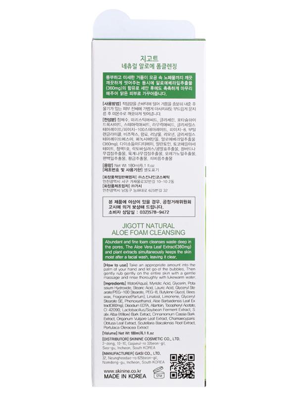 Изготовитель: Gasi Cosmetic Co.,Ltd., Республика Корея, 32, Neungheodae-ro, 625 beon-gil, Namdong-gu, Incheon. Очищающая пенка с экстрактом алоэ тщательно очищает и успокаивает кожу. Экстракт алоэ вера снимает воспаления и раздражения, увлажняет кожу и способствует быстрой регенерации. Нежная обильная пенка великолепно удаляет загрязнения, излишки кожного сала и ороговевшие клетки, очищает поры. Способ применения: выдавить небольшое количество средства на руки, вспенить с водой и массажными движениями нанести на лицо. Тщательно смыть.