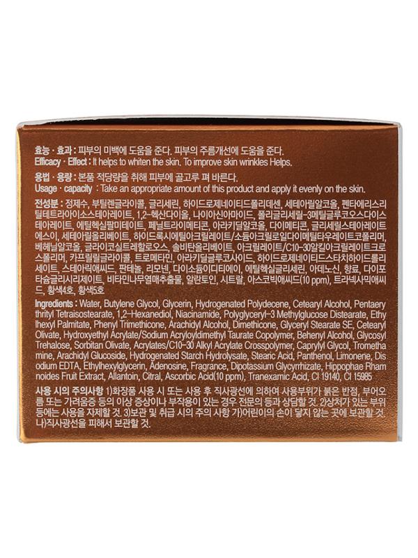 B Co., Ltd., Корея, Республика, (Dodang-dong. 2F), 211, Oksan-ro, Bucheon-si, Gyeonggi-do. Крем с витаминами и транексамовой кислотой восстанавливает эластичность кожи, поддерживает оптимальный уровень влаги в течение дня, улучшает цвет лица. Экстракты облепихи и лимона (источники витамина С) - сохраняют молодость и красоту, делают тон кожи ровным и свежим, повышают плотность и упругость. Транексамовая кислота - устраняет тусклый цвет, выравнивает тон кожи и обновляет. Способ применения: нанести крем в качестве завершающего этапа в ежедневном уходе.