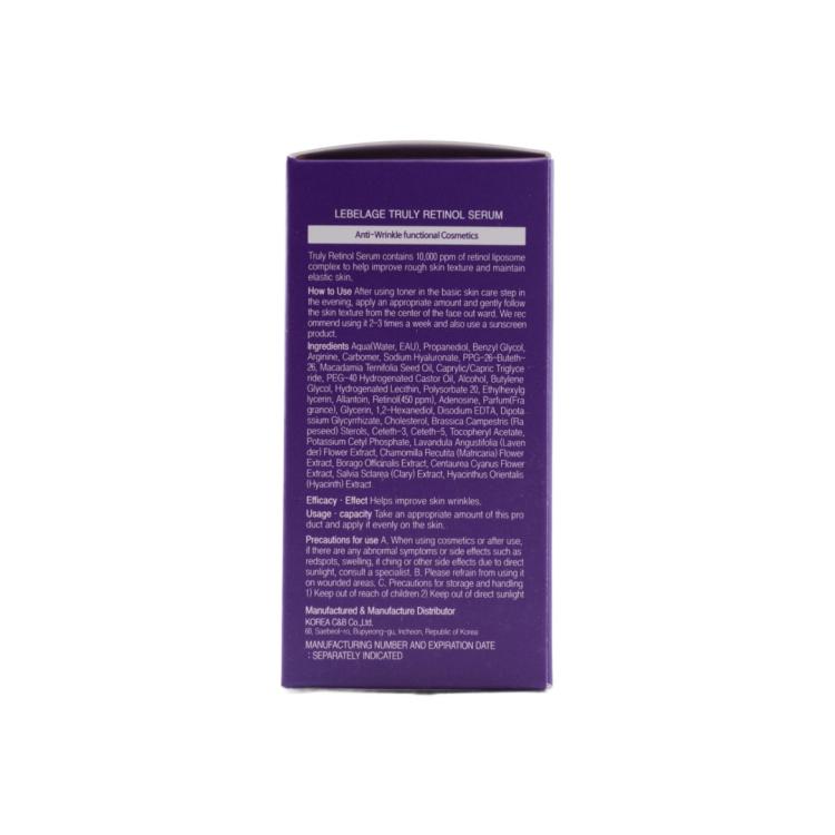 B Co., Ltd., Корея, Республика, 211, Oksan-ro, Bucheon-si, Gyeonggi-do. Сыворотка предназначена для интенсивного омоложения кожи лица. Средство содержит ретинол, который стимулирует выработку коллагена, уменьшает морщины, улучшает текстуру и тон кожи, способствует обновлению клеток и уменьшению возрастных изменений. Содержит гиалуронат натрия, масло макадамии и т.д. Рекомендуется защищать кожу солнцезащитными средствами во время использования сыворотки, из-за наличия в составе ретинола. Способ применения: нанести несколько капель сыворотки на очищенную и тонизированную кожу лица, шеи и декольте легкими массажными движениями.
