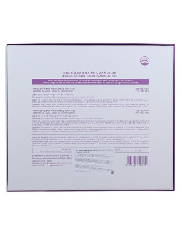 B Co., Ltd., Корея, Республика, (Dodang-dong. 2F), 211, Oksan-ro, Bucheon-si, Gyeonggi-do, GLN отсутствует, координаты ГЛОНАСС: 37.511137121672576, 126.78234888498223. Набор уходовых средств: тонер, лосьон (150*2 мл, 30*2 мл). Средства с коллагеном и зеленым чаем оказывает многофункциональное действие, интенсивно увлажняет кожу, питает ее, оздоравливает. Коллаген стимулирует фибробласты кожи к синтезу новых коллагеновых волокон, что приводит к повышению упругости и эластичности кожи, ее укреплению и разглаживанию морщин. Экстракт зеленого чая оказывает увлажняющее и успокаивающее действие, обладает противовоспалительными свойствами. Способ применения: на очищенную кожу нанести тонер, затем лосьон.