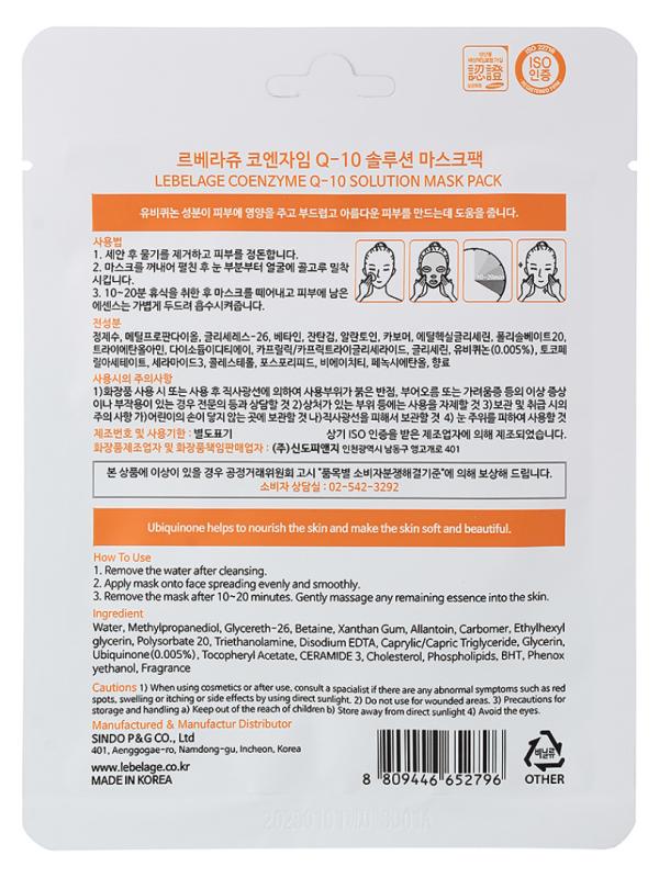 G CO., Ltd., Корея, Республика, 401, Aenggogae-ro, Namdong-gu, Incheon. Тканевая маска обеспечивает мощное омолаживающее и восстанавливающее действие, способствует сглаживанию и выравниванию рельефа, устранению мелких мимических морщин и заломов на кожном покрове. Маска содержит высокую концентрацию коэнзима Q10, активное вещество мгновенно проникает в пустоты, запускает процессы регенерации и обновления на клеточном уровне, тормозит механизмы старения дермы и проявление признаков увядания тканей. Способ применения: на очищенную кожу лица нанести маску, оставить на 10-20 минут, оставшуюся эссенцию распределить по коже лица.