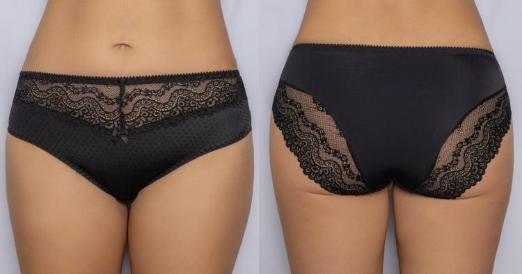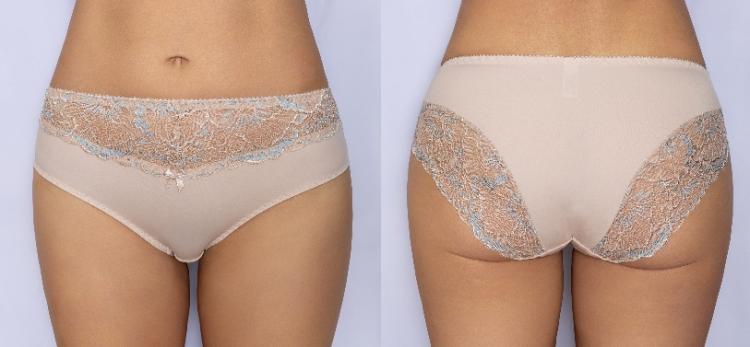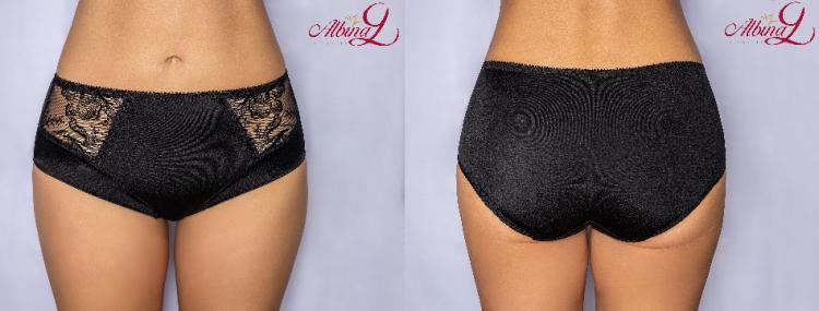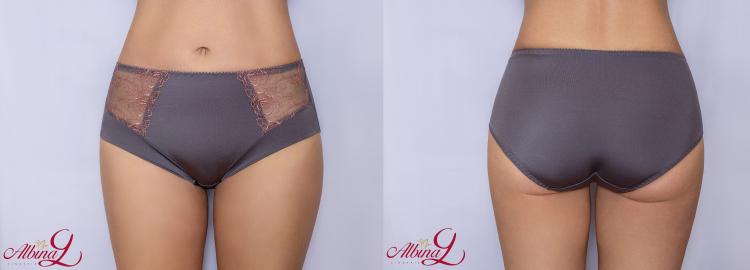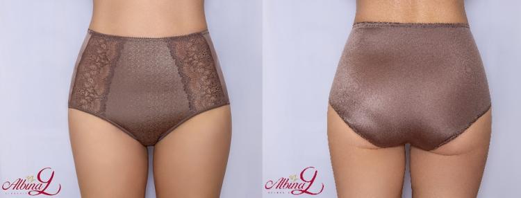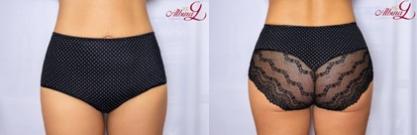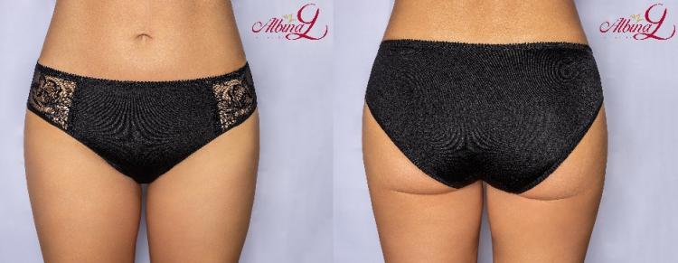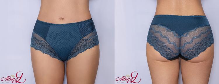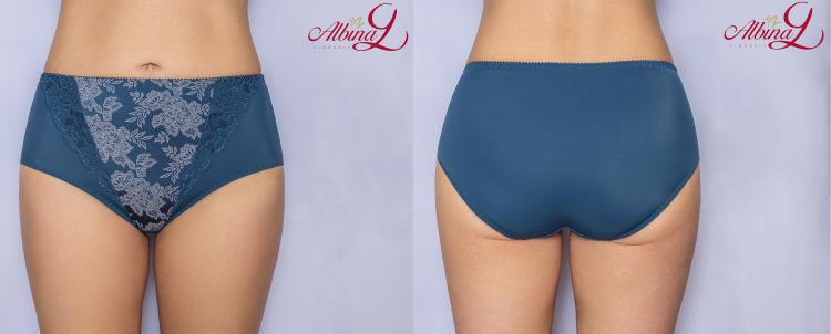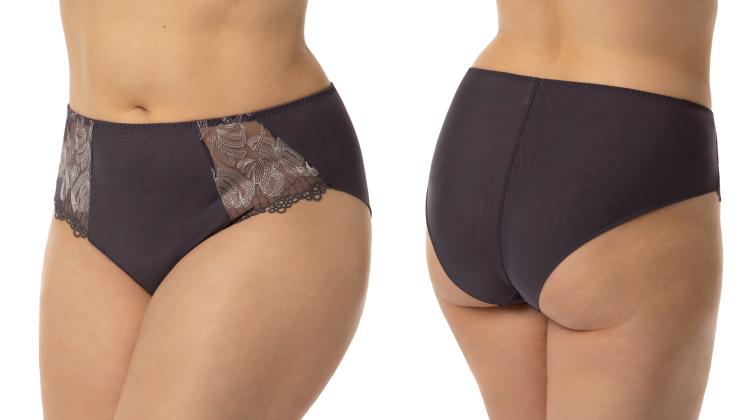 Состав: Трусы-слип комфорт с завышенной линией талии. Выполнены из микрофибры без блеска и эластичного кружева с орнаментом "