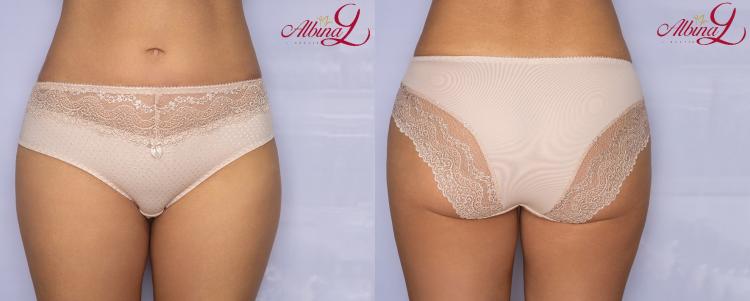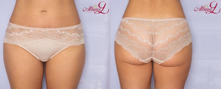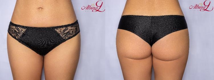 Состав: Полиамид - 65%-Эластан - 20% -Хлопок - 15%. Трусы-бразилиана 350 с заниженной линией талии. Выполнены неэластичной вышивки и эластичной микрофибры. Срезы по краю ножек обработаны на плоскошовной машине. Такие трусики имеют V-образный крой, закрывающий сзади ягодицы лишь наполовину. Отлично подчеркивают ягодицы.