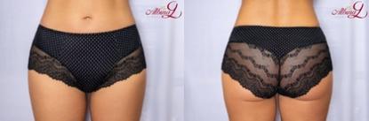 Состав: Полиамид - 65%-Эластан - 20% -Хлопок - 15% Трусы-слип комфорт 480 с завышенной линией талии. Выполнены из набивной микрофибры в точку, гладкой микрофибры и эластичного кружева.