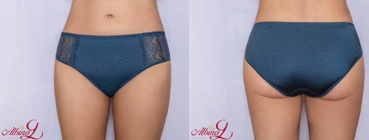 Состав: Полиамид - 65%-Эластан - 20% -Хлопок - 15% Трусы-слип 431 со средней линией талии. Выполнены из набивной микрофибры в точку, гладкой микрофибры и эластичного кружева. Срезы по краю ножек обработаны на плоскошовной машине.
