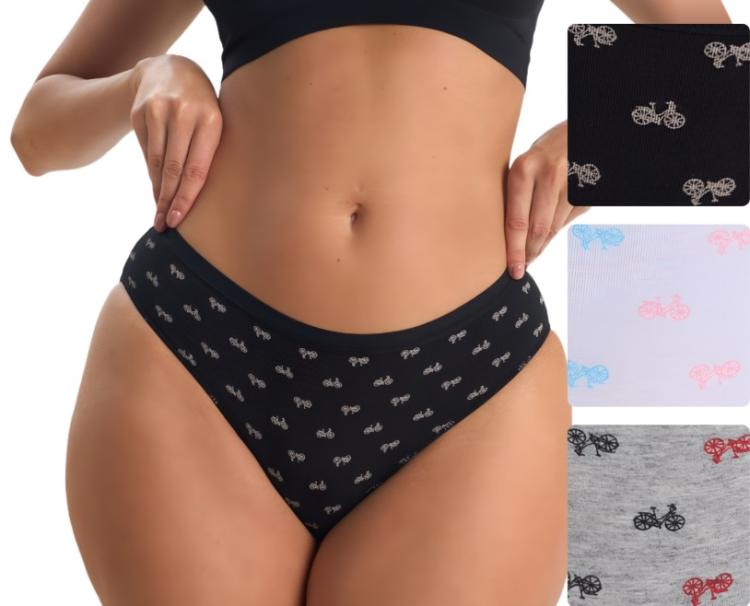 Состав: Полиамид-Полиамид – 65% - Эластан-Эластан – 20% - Хлопок-Хлопок – 15% Трусы-слип со средней линией талии. Выполнены из эластичной принтованной микрофибры и эластичного кружева. Срезы по краю ножек обработаны на плоскошовной машине. Украшение: атласный бантик.