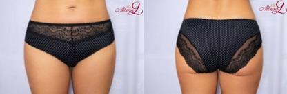 Состав: Полиамид-Полиамид – 65% - Эластан-Эластан – 20% - Хлопок-Хлопок – 15%. Трусы-бразилиана с заниженной линией талии. Выполнены из вышивки на неэластичной сетке, микрофибры. Срезы по краю ножек обработаны на плоскошовной машине. Такие трусики имеют V-образный крой, закрывающий сзади ягодицы лишь наполовину. Отлично подчеркивают ягодицы.