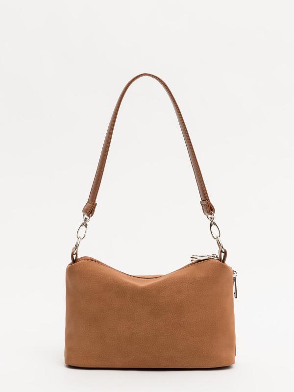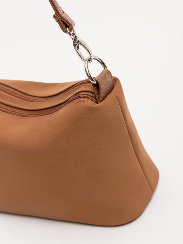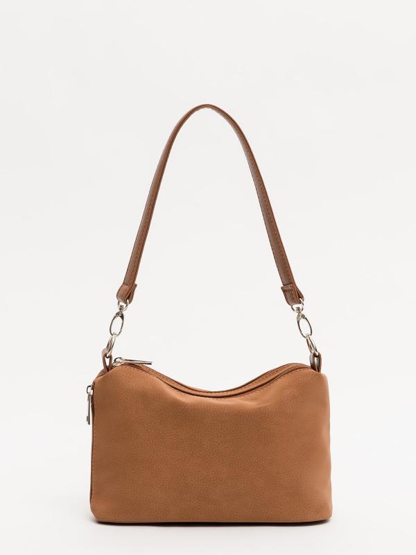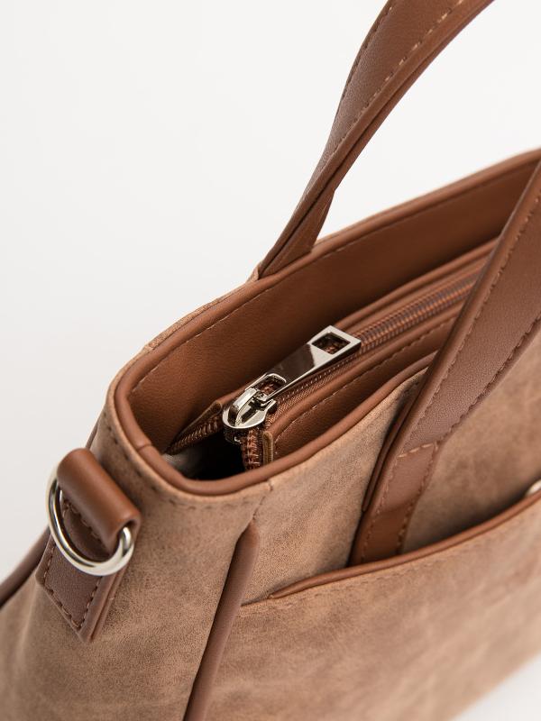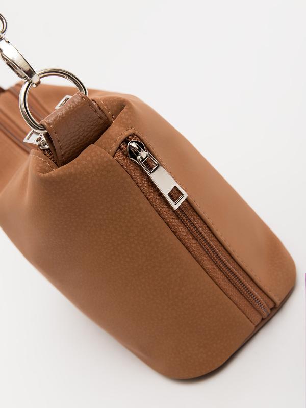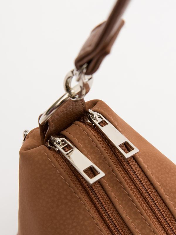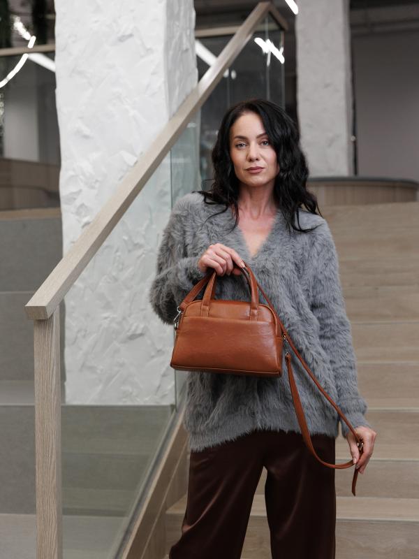 Сумка кросс-боди среднего размера — практичный и стильный аксессуар для повседневных образов. Имеет два отдела на молниях и оснащена короткой ручкой в виде косы на карабинах, а также дл