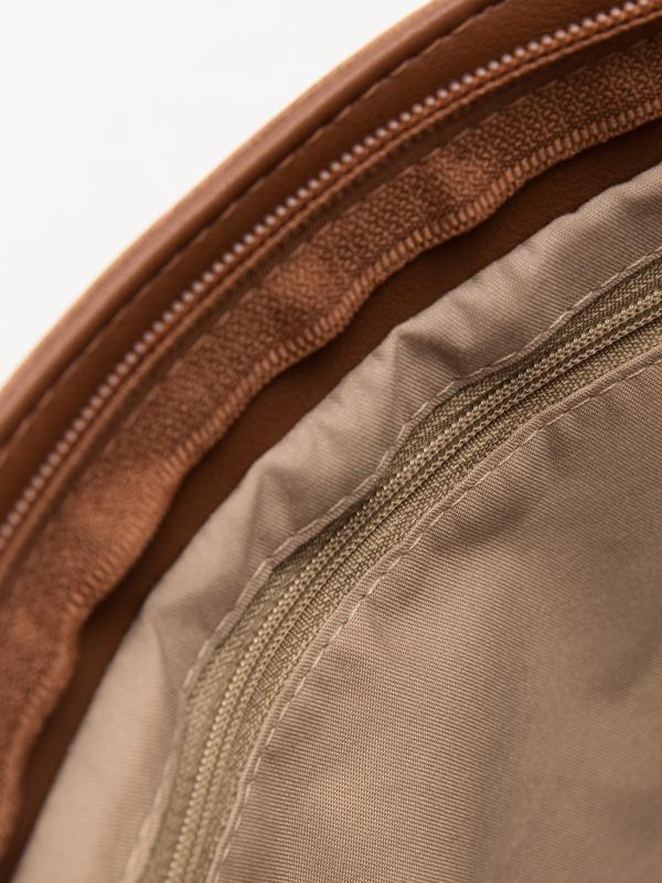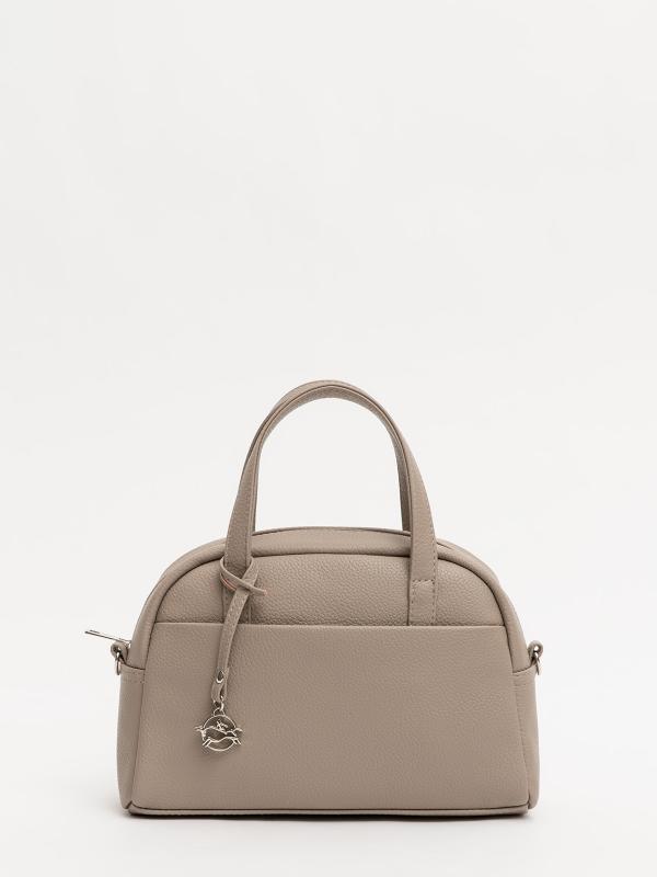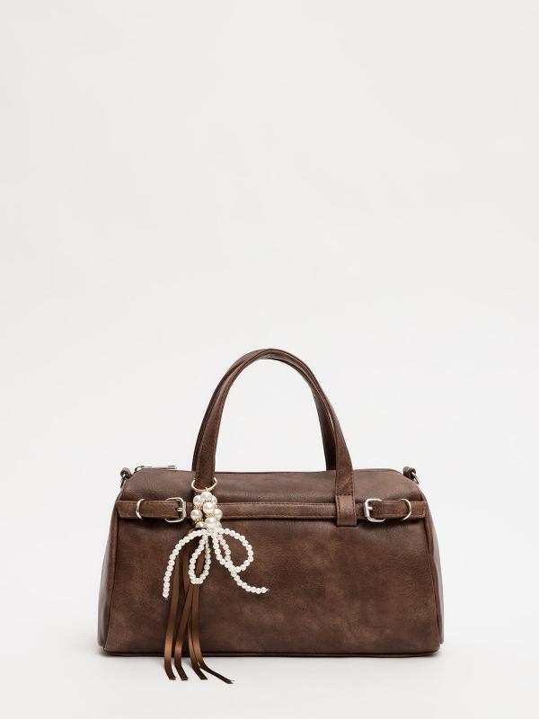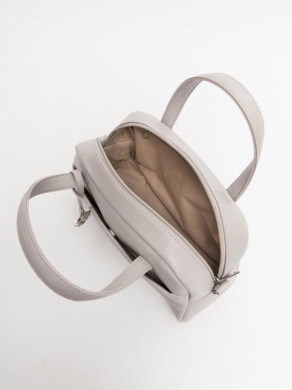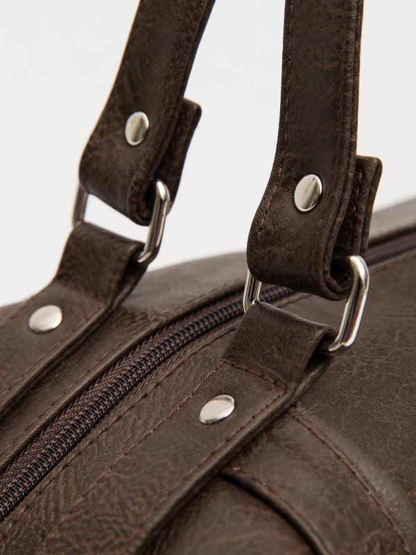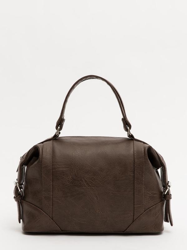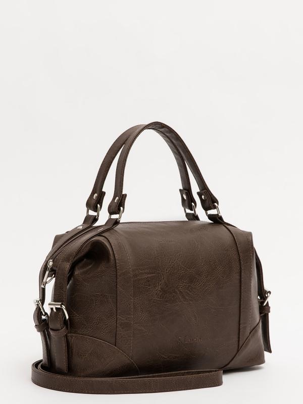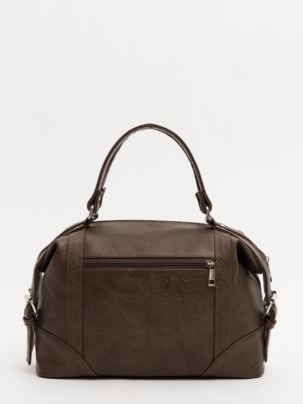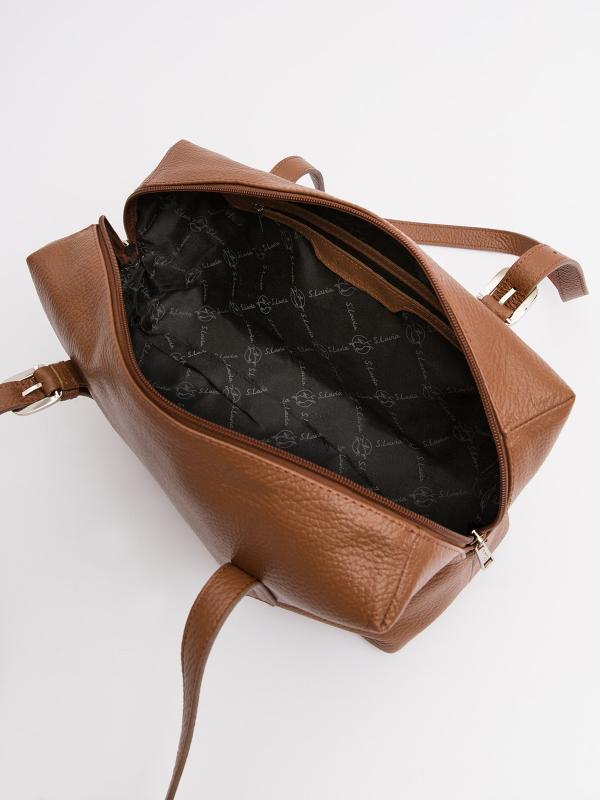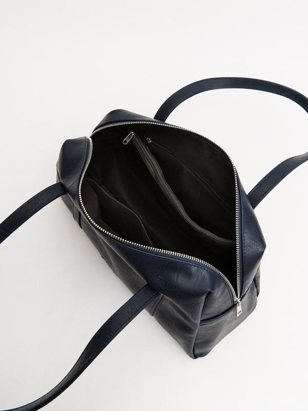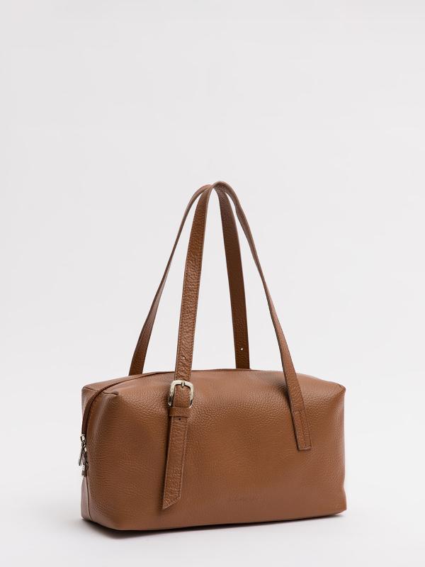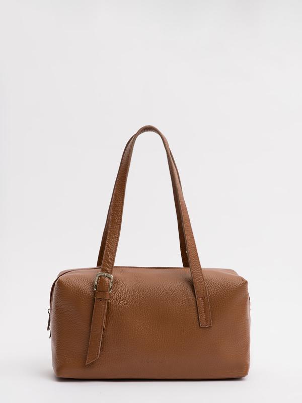 Эта женская сумка-саквояж габарита M с центральным входом на металлической молнии сочетает в себе винтажный шарм и современную практичность. Плоские настрочные ручки на передней и задней части дополнены тиснени