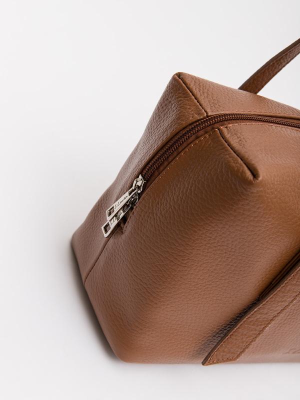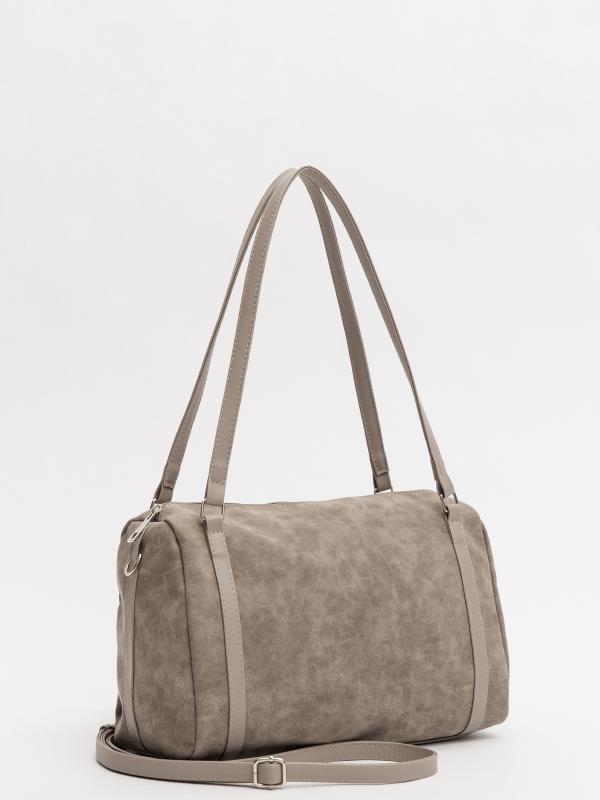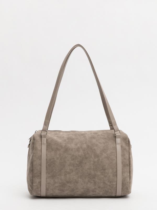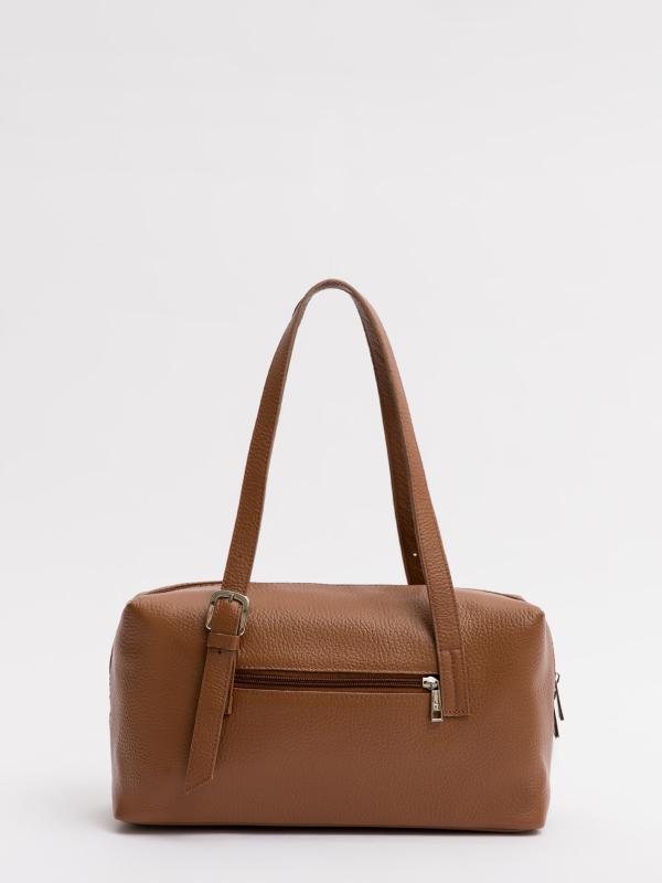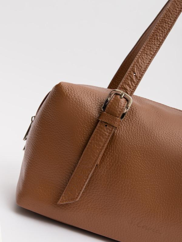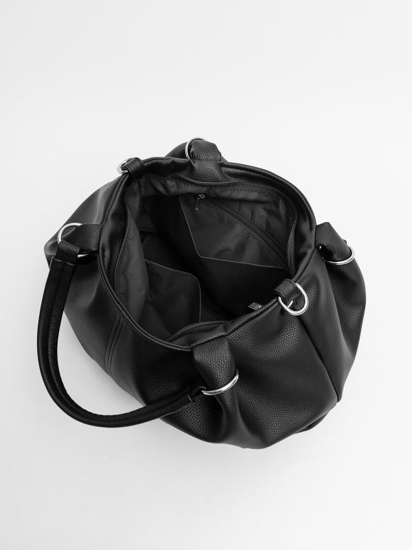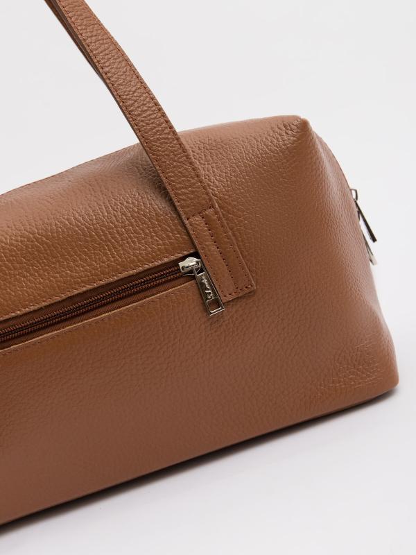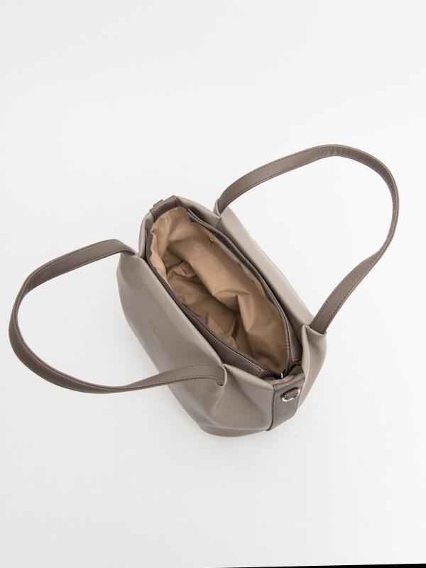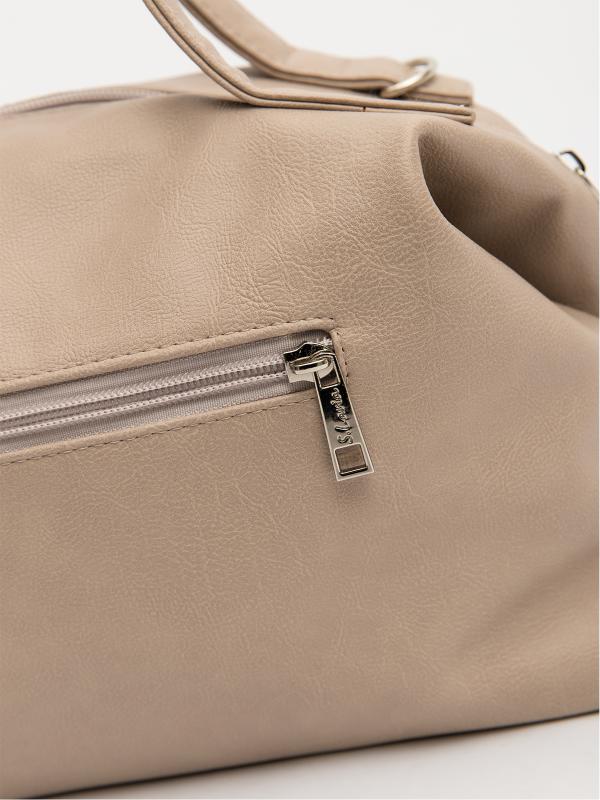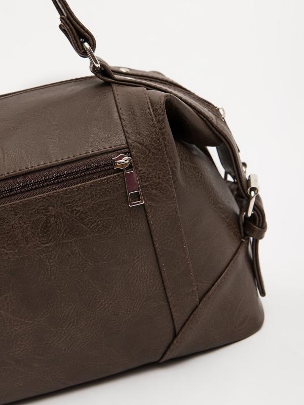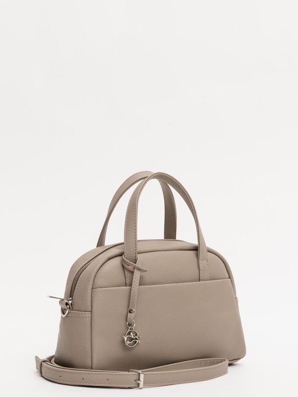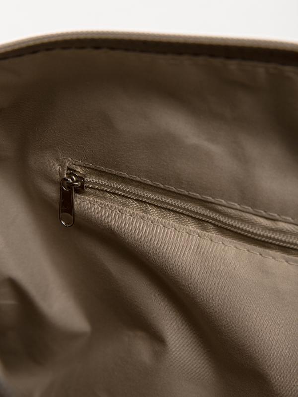 Эта женская сумка-саквояж габарита M с центральным входом на металлической молнии сочетает в себе винтажный шарм и современную практичность. Плоские настрочные ручки на передней и задней части дополнены тиснени