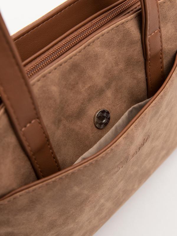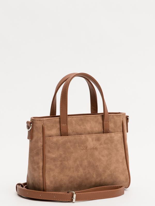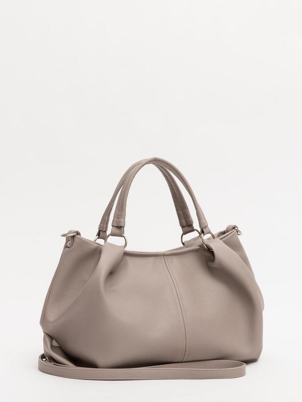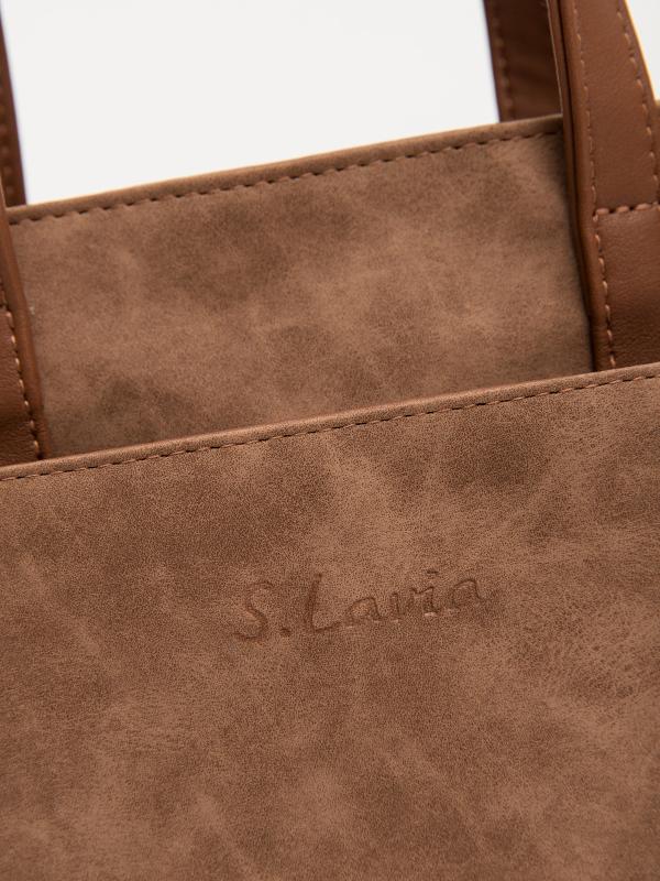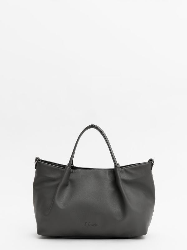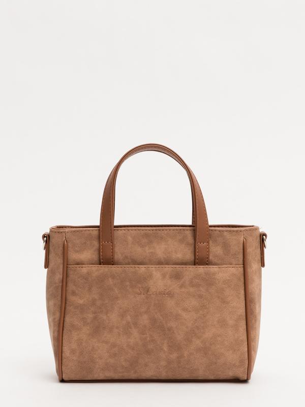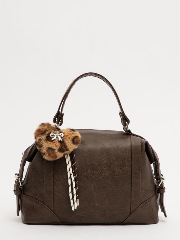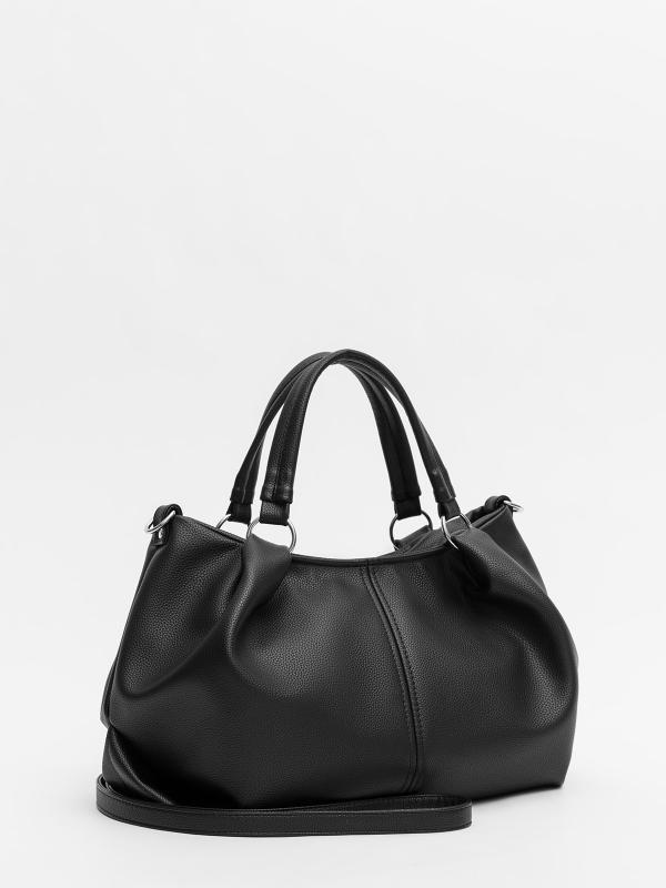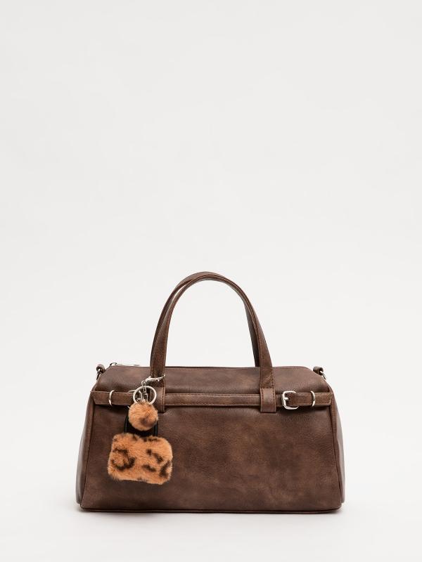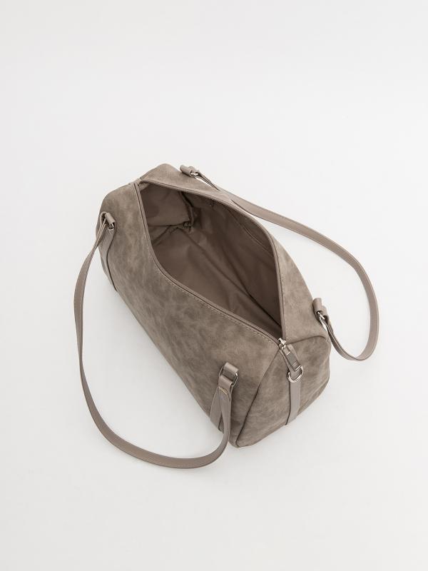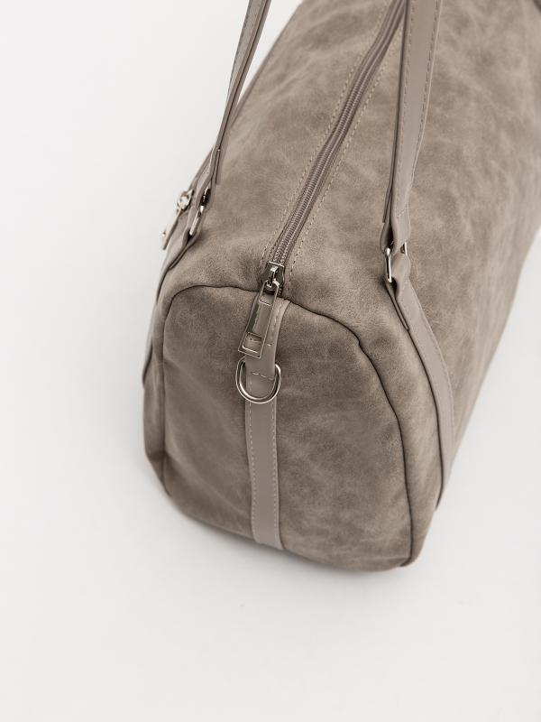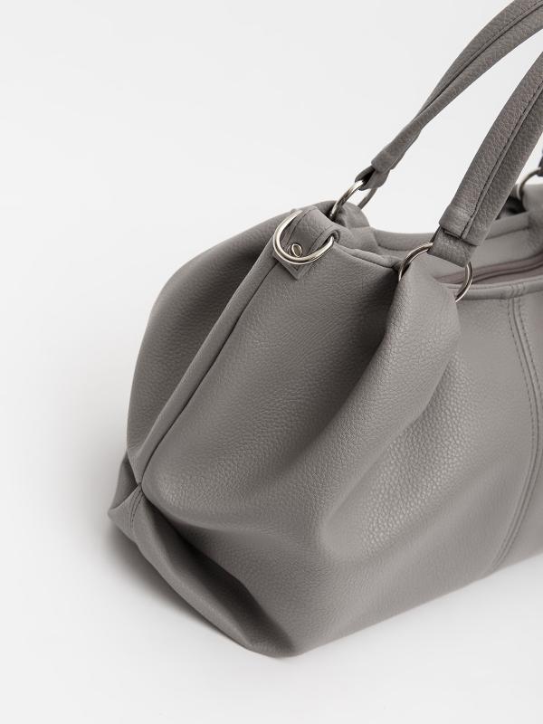 Эта женская сумка-саквояж габарита M с центральным входом на металлической молнии сочетает в себе винтажный шарм и современную практичность. Плоские настрочные ручки на передней и задней части дополнены тиснени