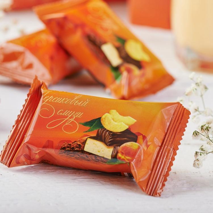 Состав Cахар-песок, патока крахмальная, глазурь шоколадная (состав: сахар-песок, какао-порошок натуральный, заменитель какао-масла, какао-масло, эмульгатор лецитин), вода питьевая, пюре яблочное, желеобразователь – пектин, влагоудерживающий агент – цитрат натрия, антиокислитель – лимонная кислота, белок яичный сухой, манго сок, краситель аннато, ароматизатор натуральный «Манго».