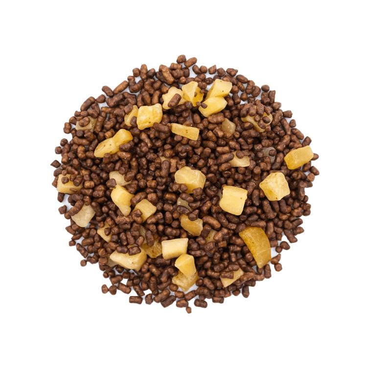 Этот молочный шоколад изготовлен в меланжере из какао-бобов Fino de aroma. Одно из главных его отличий от других основ для приготовления шоколада — то, что это не порошок, а шоколадная стружка крупной фракции.