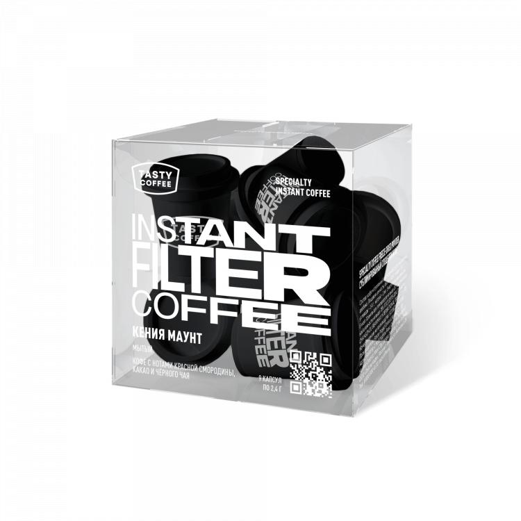 В этих маленьких стаканчиках — растворимый спешелти кофе. Это продукт, к запуску которого мы долго готовились, выбирали сырьё и технологию производства. В основе этого растворимого кофе Кения Маунт — сочный кофе с нотами красной смородины, какао и чёрного чая.