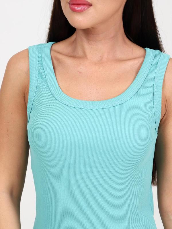 Платье женское свободного силуэта, с круглым вырезом горловины. Без рукавов. По низу изделия - широкие оборки.