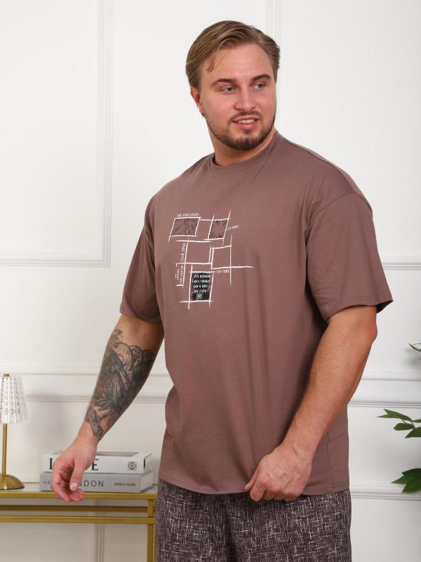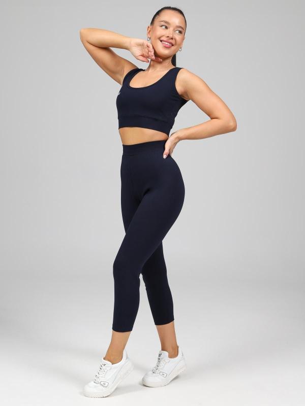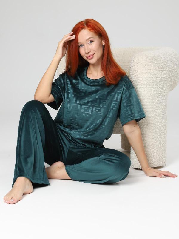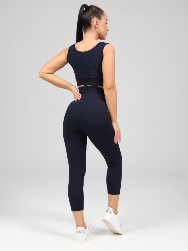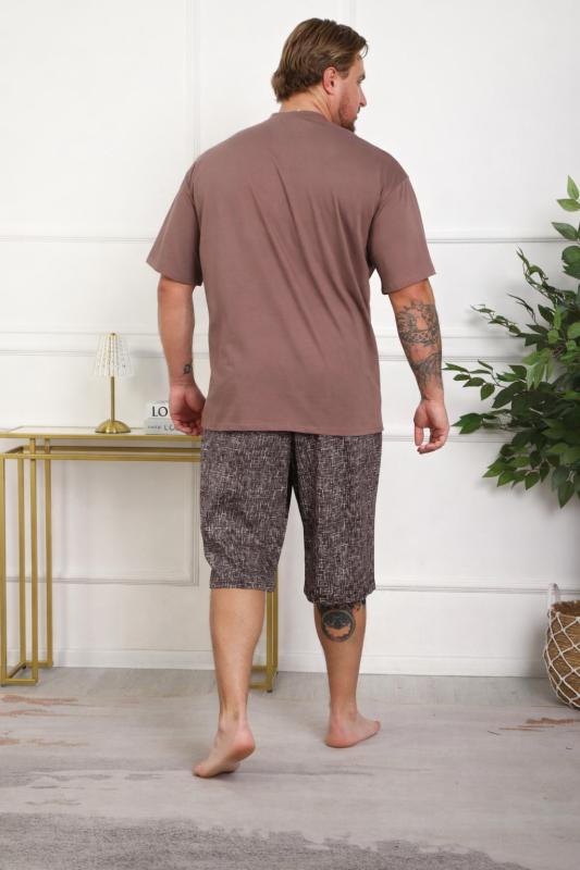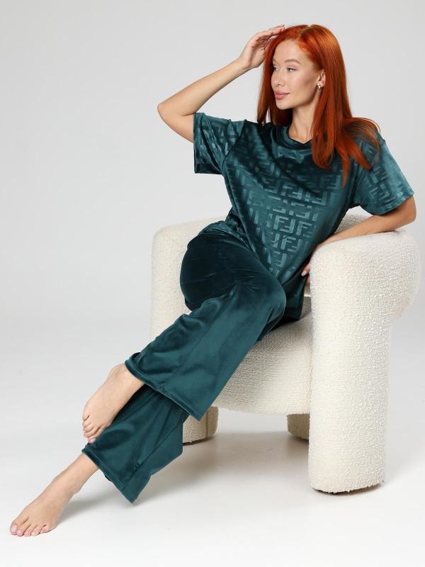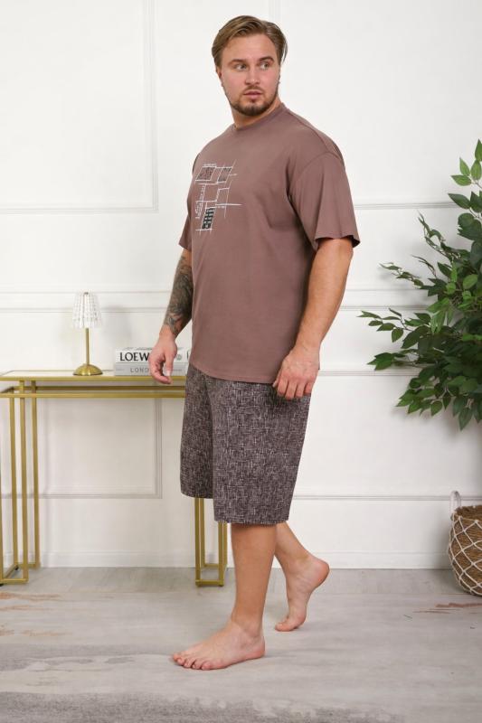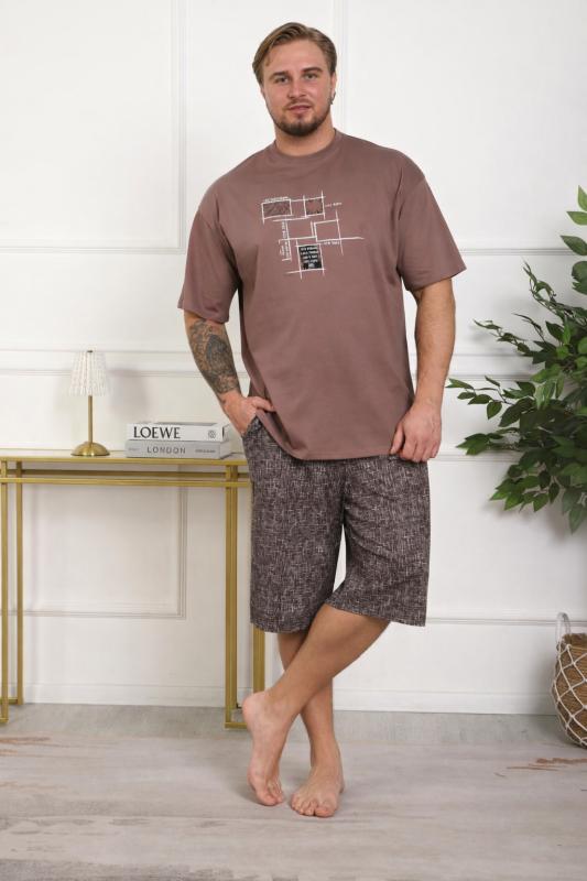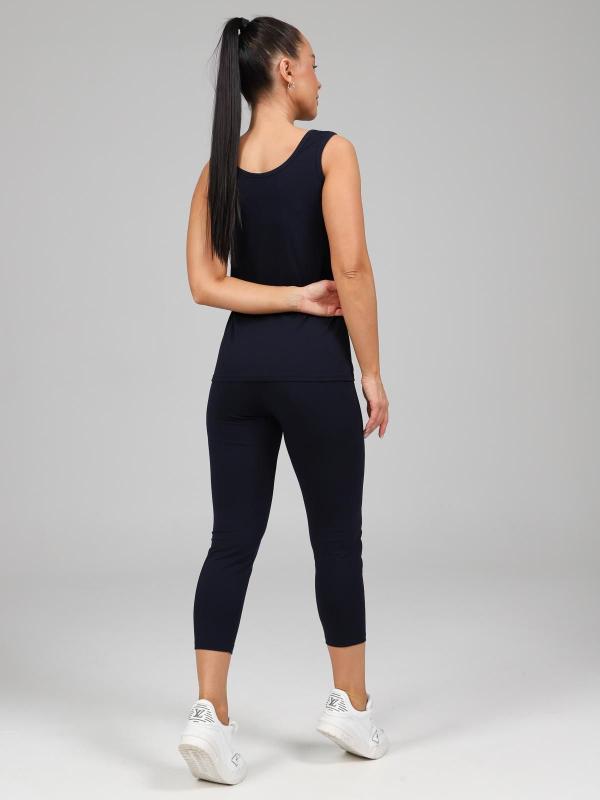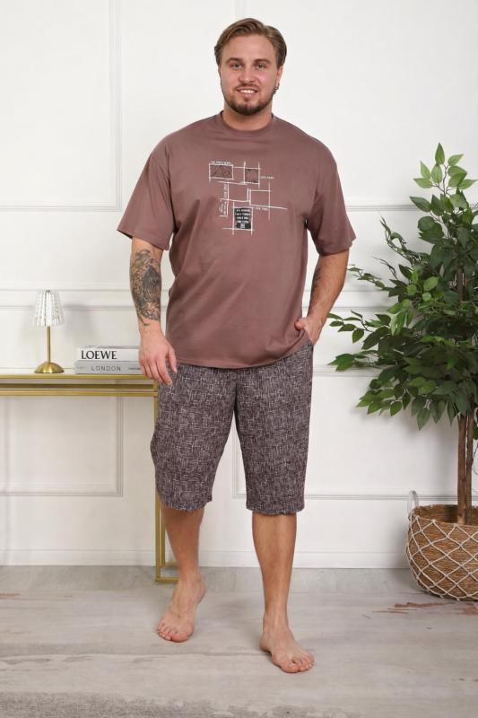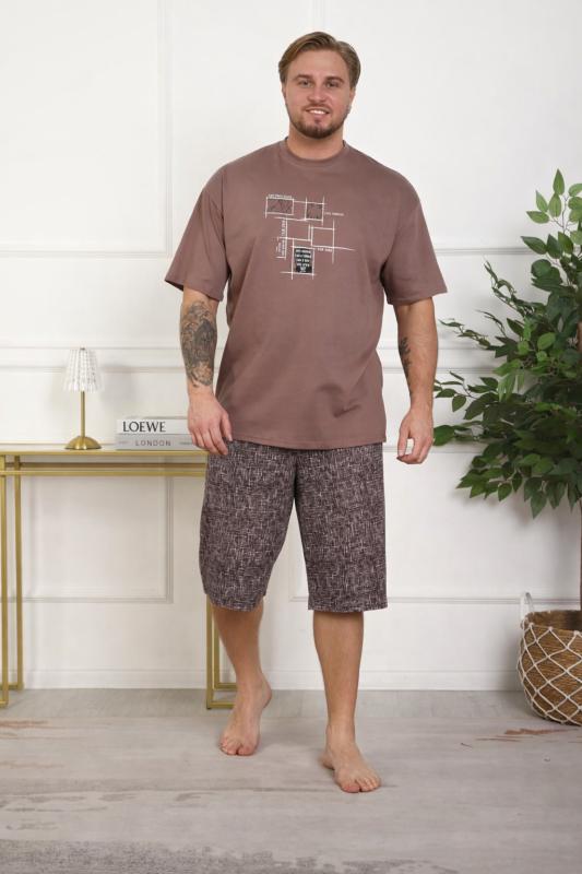 Костюм женский больших размеров прямого силуэта, на передней полочке имеются складки. Присутствуют карманы в боковых швах. Бриджи высокой посадки. Длина изделия до середины икры.