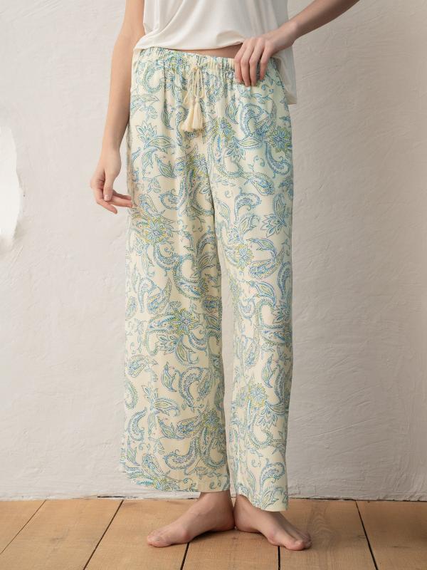 Брюки прямого кроя с эластичной резинкой на поясе, обеспечивают комфортную посадку. Широкие штанины и мягкая ткань делают их особенно удобными для сна и домашнего времяпрепровождения.