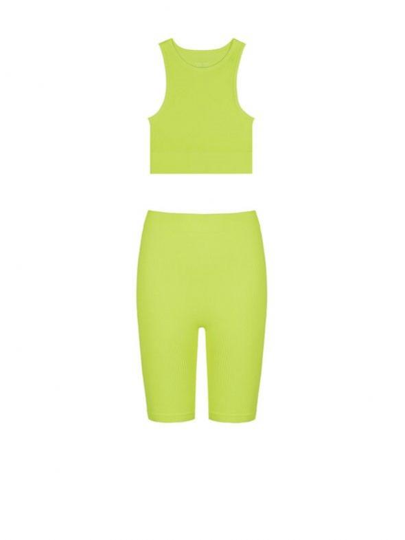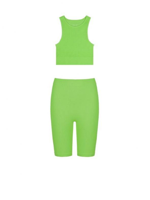 Женский спортивный комплект из полиамида мягкий на ощупь и приятный к телу. Данная модель обладает высокой эластичностью и не сковывает движения, она прекрасно подойдет для занятий фитнесом, йогой, танцами, гимнастикой, бегом и другими видами спорта. Изделие включает в себя топ и шорты. Топ будет отлично сидеть по фигуре благодаря плотной резинке снизу и при этом комфортно ощущаться при ношении. Женские шорты оснащены ластовицей. Эта модель отлично облегает тело, подчеркивая его контур и создавая ощущение «второй кожи».