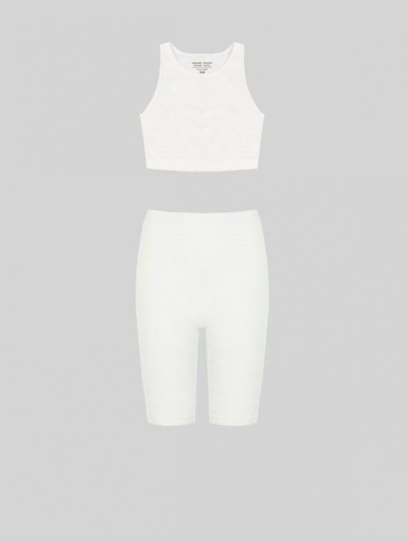 Домашняя пижама от торговой марки Indefini. В комплект входит майка-топ и шорты.
