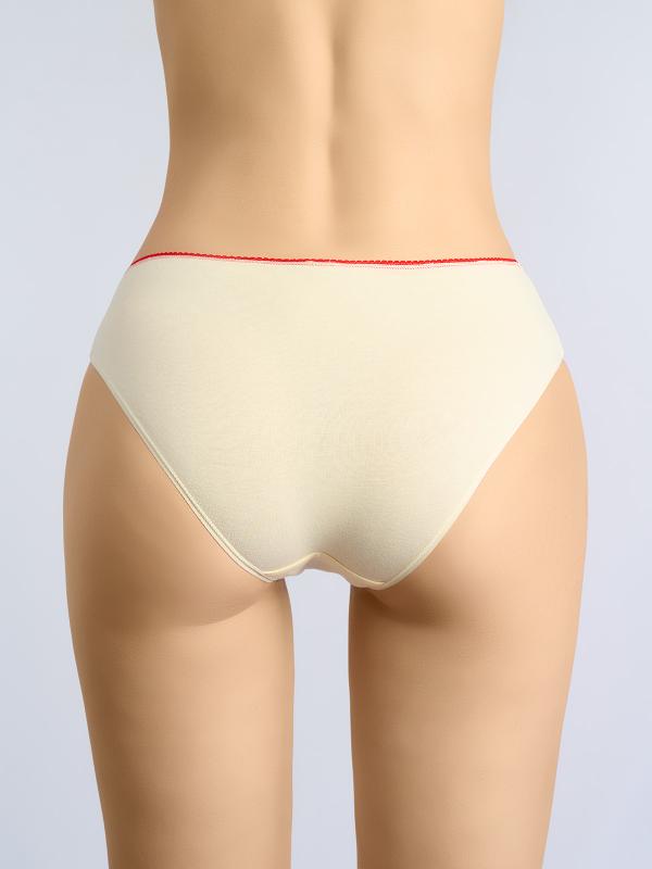 Трусы средней посадки держатся на талии мягкой красной резинкой с повторяющейся надписью: «WISHING YOU ALL THE BLESSINGS OF A BEAUTIFUL SEASON».