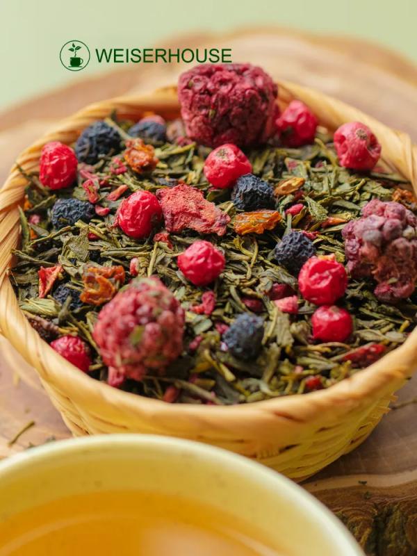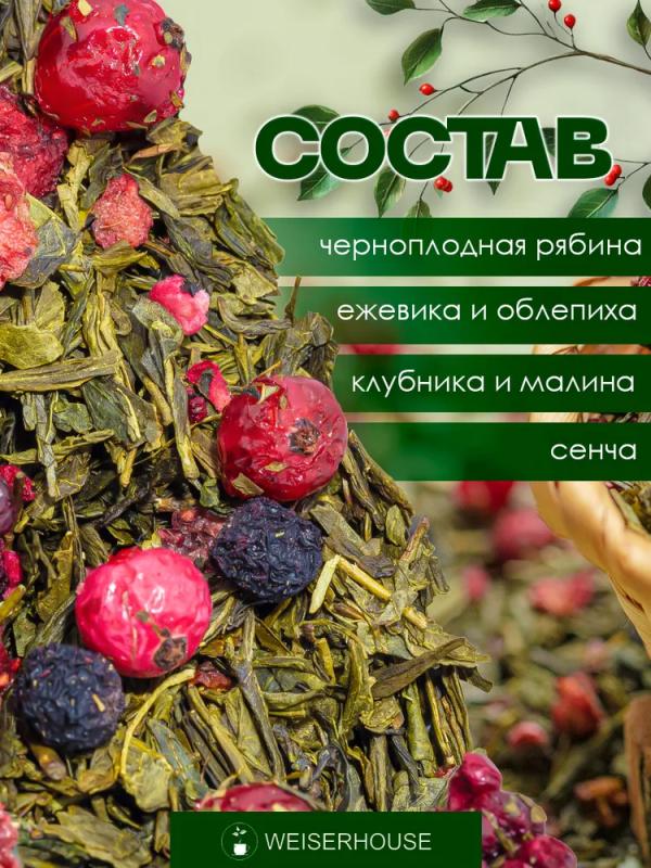 Китайский зеленый чай сенча с ягодами ежевики, облепихи, брусники и черноплодной рябины и кусочками клубники и малины. Свежий вкус зеленого чая прекрасно сочетается с сочностью спелых лесных ягод, создавая летнее настроение. Настой светло-зеленого цвета с ярким вкусом и ароматом.