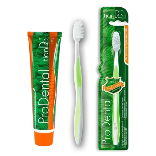 Улыбайся на здоровье с «Проденталь»! Активные компоненты зубной пасты активизируют обменные процессы в пародонте, способствуют ослаблению воспаления в тканях десен, ускоряют восстановление поврежденных тканей. Эффект усилит зубная щетка с ворсинками из современного полимера, которые удаляют налет без вреда для эмали.