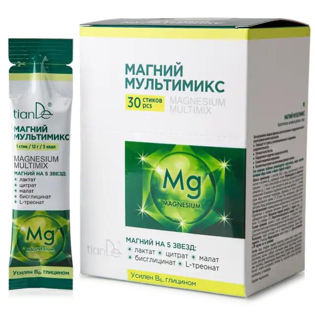 «Магний мультимикс» от корпорации TianDe оптимально сочетает в себе сразу пять видов магния (лактат, цитрат, малат, бисглицинат, L-треонат), в том числе в биодоступной хелатной форме, обеспечивая эффективную поддержку организма. Мультисостав, усиленный витамином В6 и глицином: