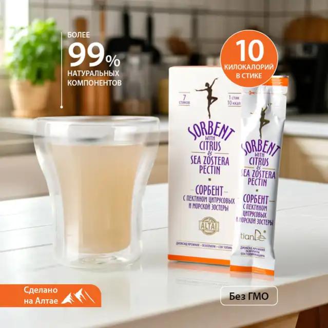 Сорбент с пектином цитрусовых и морской зостеры поможет вернуть отличное самочувствие! Комплекс на основе самых действенных природных сорбентов сочетает в себе полезные свойства и высокую эффективность пищевых волокон и диоксида кремния аморфного. Работая вместе, они: