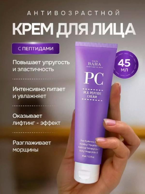 Антивозрастной крем с гиалуроновой кислотой и комплексом пептидов предназначен для обезвоженной, зрелой и увядающей кожи лица. Он ускоряет ее обновление, сужает поры, защищает от ультрафиолета. Имеет легкую текстуру, быстро впитывается, не оставляет липкости, жирности и дискомфорта.