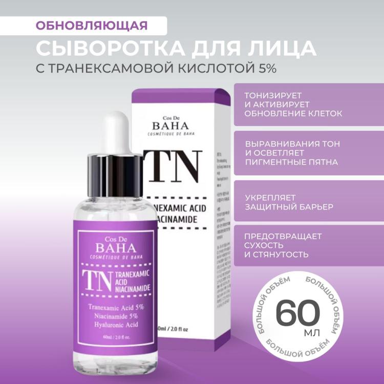 Сыворотка для лица с транексамовой кислотой и ниацинамидом отбеливает кожу и пигментацию, выравнивает общий тон, избавляет от постакне, уменьшает проявление мелазмы. Ее формула базируется на экстракте алоэ, который заменил воду и дополнительно оказывает антибактериальный эффект, ускоряет заживление микроповреждений. Транексамовая кислота снимает воспаление, предотвращает образование пигментации. Ниацинамид увлажняет, снижает выработку меланина, сужает поры, уменьшает жирность кожи и активность сальных желез. Сыворотка увлажняет все слои дермы, разглаживает и предотвращает морщины, повышает тургор. Для любой кожи. Способ применения: до крема пару капель сыворотки вбить в чистую кожу похлопывающими движениями.