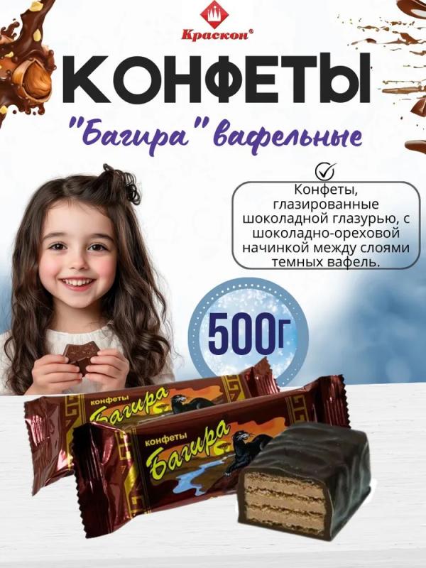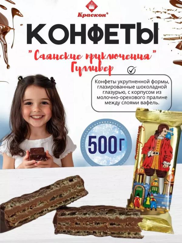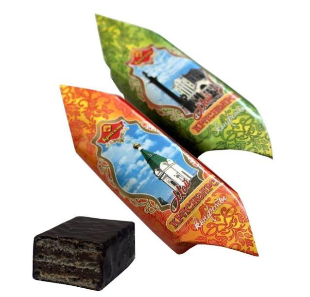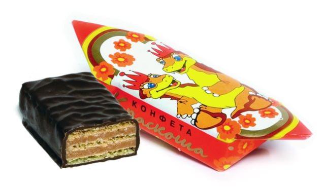 Глазированные шоколадной глазурью конфеты с молочно-ореховым кремом между слоями вафель.