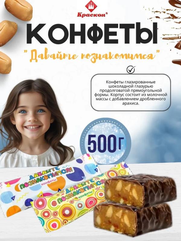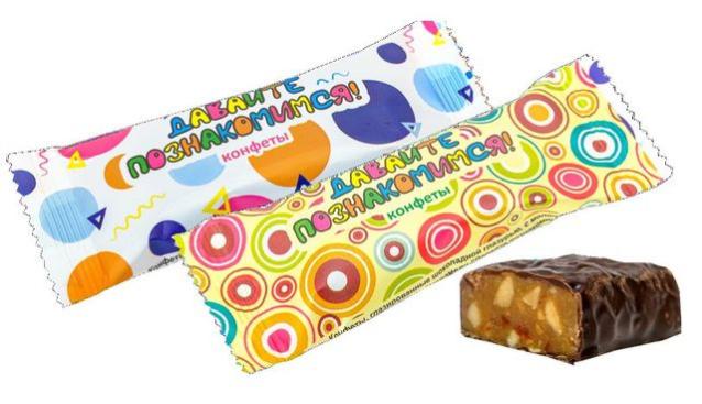 Конфеты глазированные шоколадной глазурью продолговатой прямоугольной формы. Корпус состоит из молочной массы с добавлением дробленного арахиса.