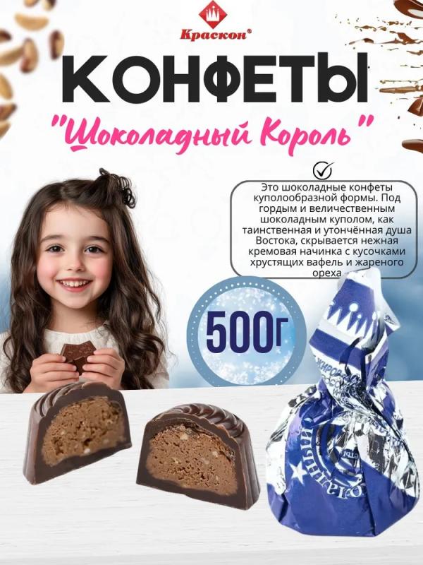Это шоколадные конфеты куполообразной формы. Под гордым и величественным шоколадным куполом, как таинственная и утончённая душа Востока, скрывается нежная кремовая начинка с кусочками хрустящих вафель и жареного ореха