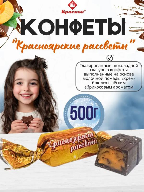 Оболочка представлена тёмным шоколадом, а начинка — уже светлая с оттенком утренней зари, выполненная на основе молочной помады «крем-брюле» с лёгким абрикосовым ароматом.